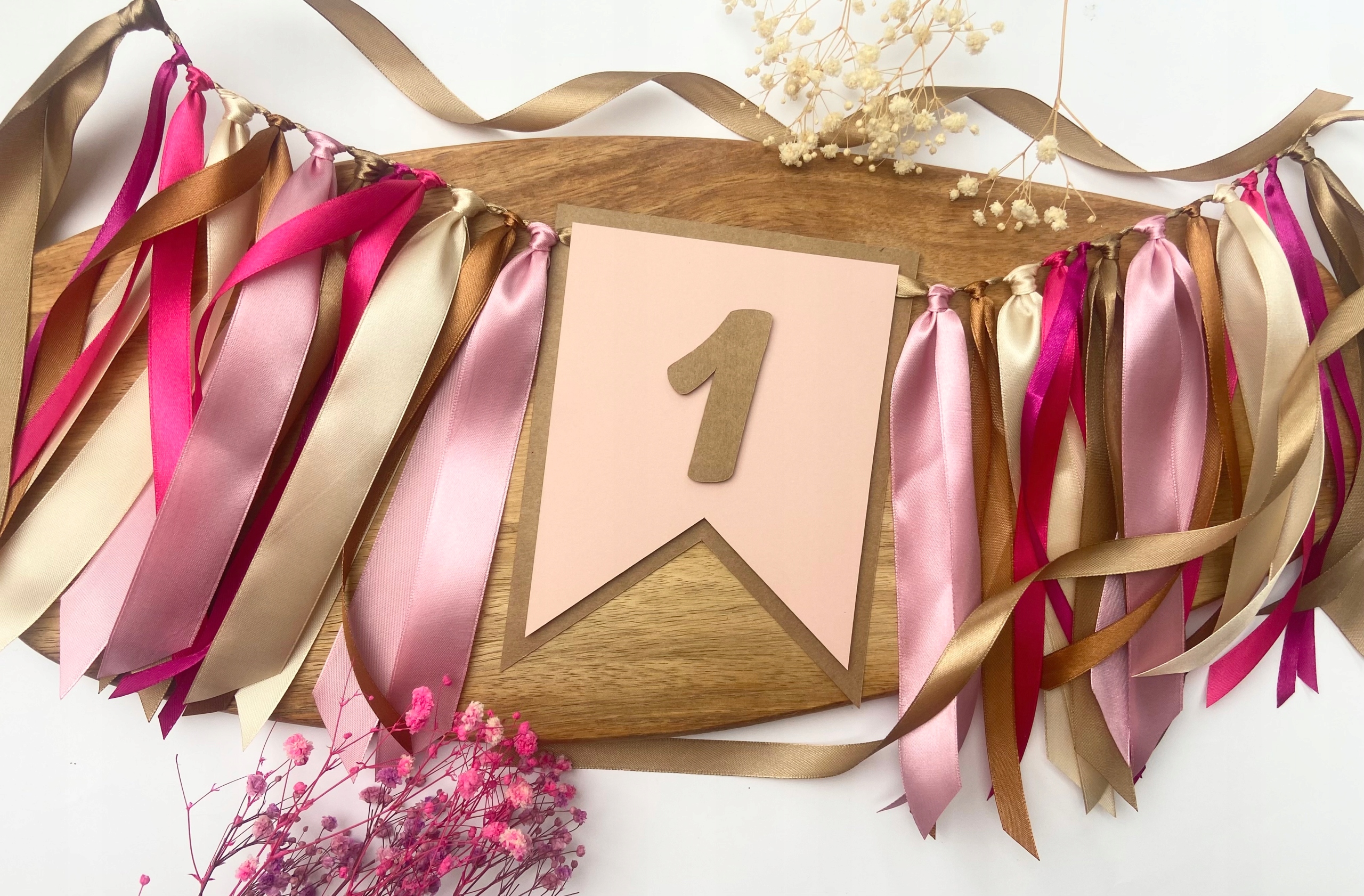 Poporczyk с стулом с числами и лентами в различных оттенках розового, коричневого и бежевого, добавит очарование и характер каждой церемонии Это добавит тепло и личность к каждой церемонии! Украшение будет прекрасным дополнением к церемонии