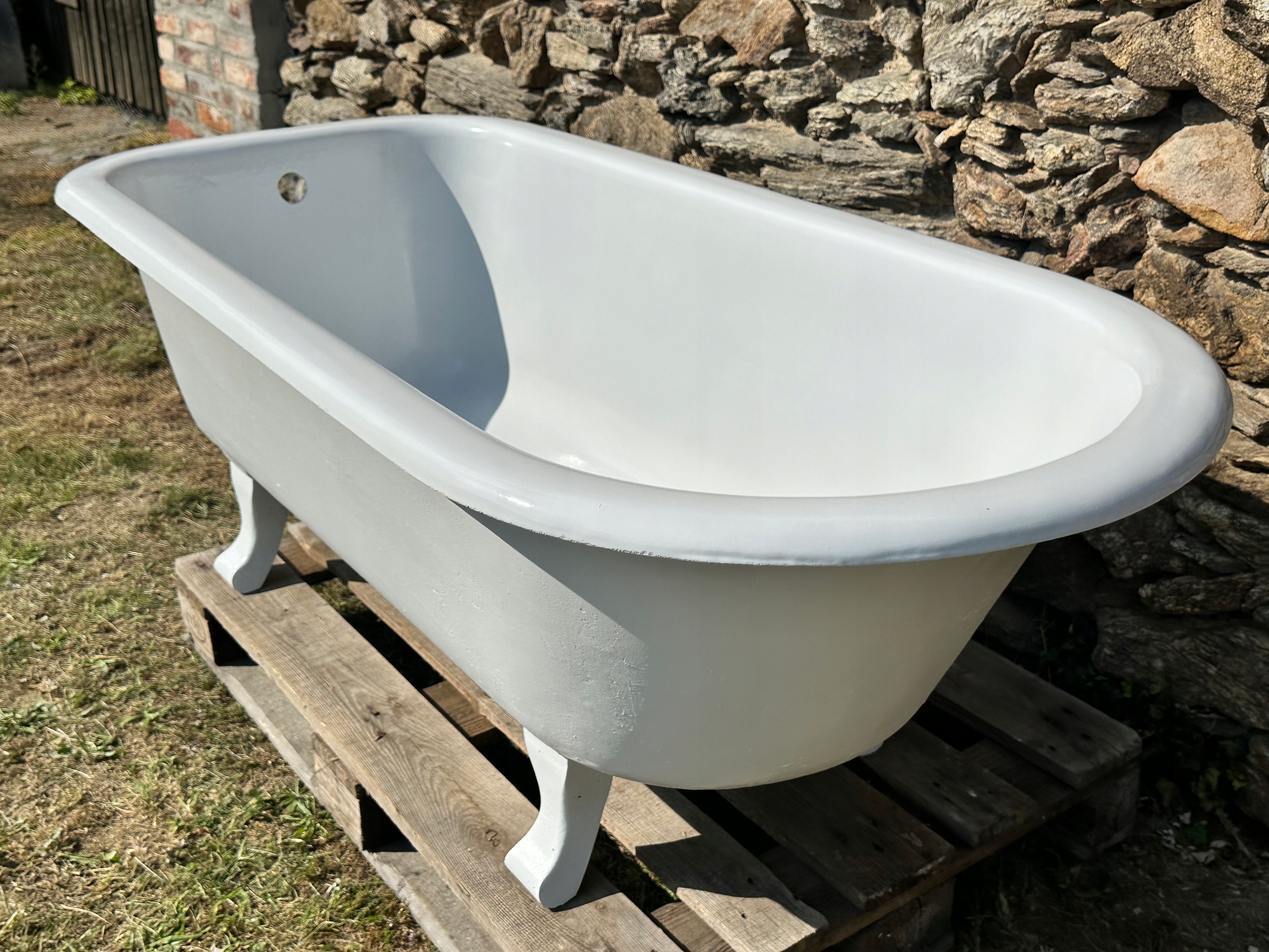 Ванна очищена от старой краски и защищена от коррозии. Состояние - целое, плотное, без трещин - как на фотографиях. Тщательно проверено перед покупкой. Ножки привинчены, поэтому их положение относительно пола можно регулировать. Привлекательная цена, новая ванна такого типа стоит от нескольких до нескольких тысяч. злотый. Если вы ищете что-то оригинальное, этот аукцион именно для вас.