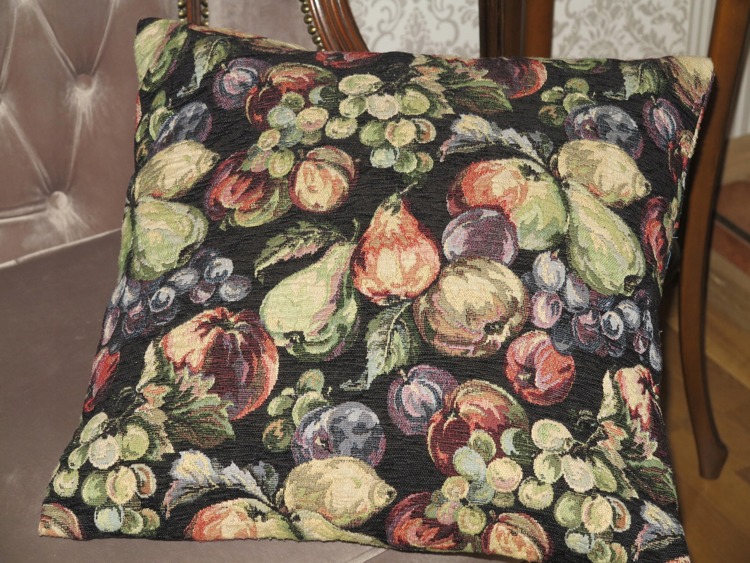 Предмет аукциона — необыкновенно красивая, большая гобеленовая подушка с чудесными фруктами. Б/у, в отличном состоянии. Еще одна такая же большая подушка доступна на другом моем аукционе. Рекомендую