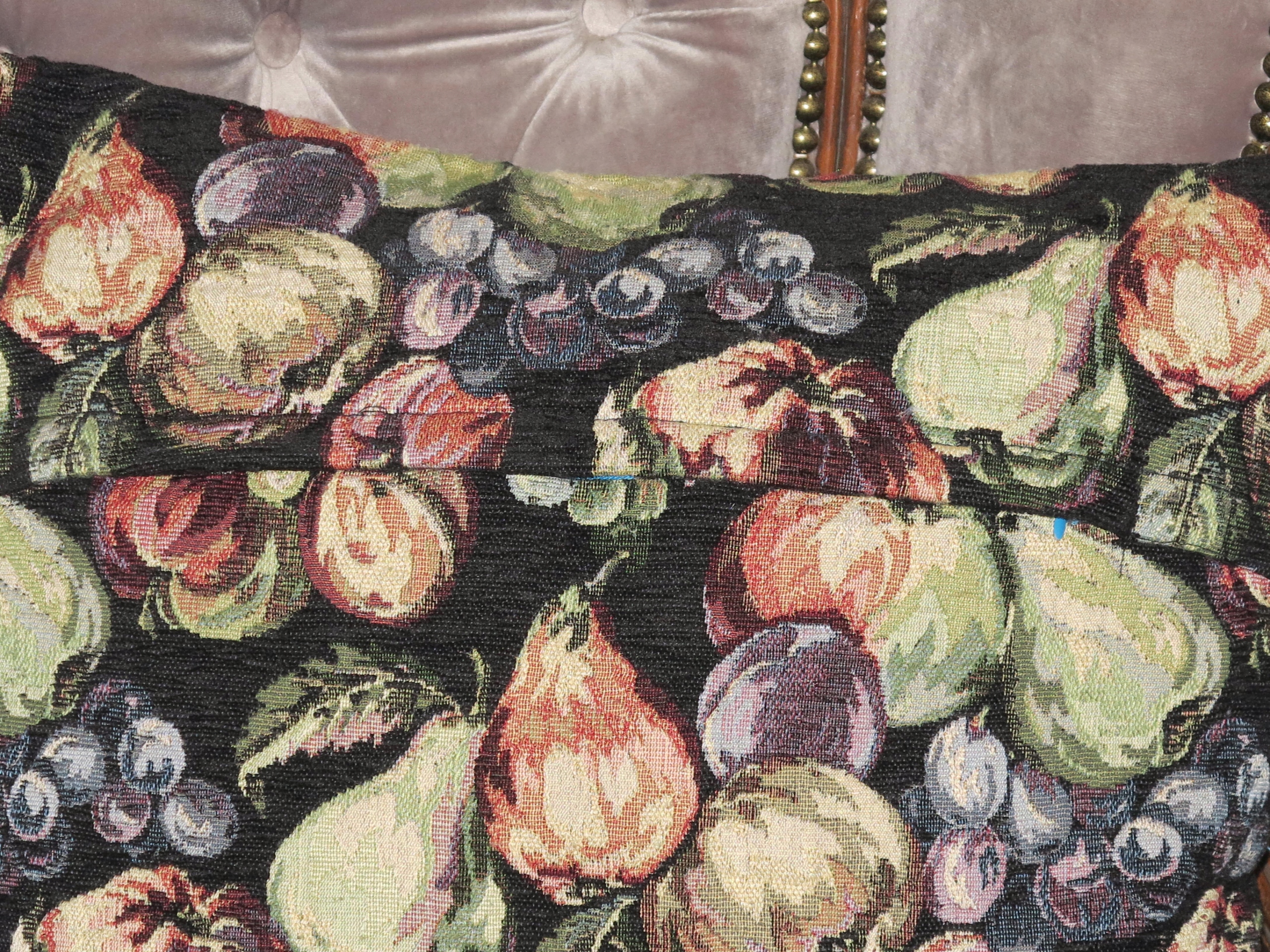 ОЧЕНЬ КРАСИВАЯ, БОЛЬШАЯ ПОДУШКА, ПОЛНОСТЬЮ ИЗ ПЛОТНОЙ ШЕНИЛЬНОЙ ГОБЕЛЕНА (как бархат), ОЧАРОВАТЕЛЬНЫЕ ФРУКТЫ КАК НАРИСОВАНЫ. ПОДУШКА С СИНТЕТИЧЕСКИМ НАПОЛНИТЕЛЕМ - МЯГКАЯ, ПУШИСТАЯ И ОЧЕНЬ ПОЛНАЯ (новая, заменена мной)