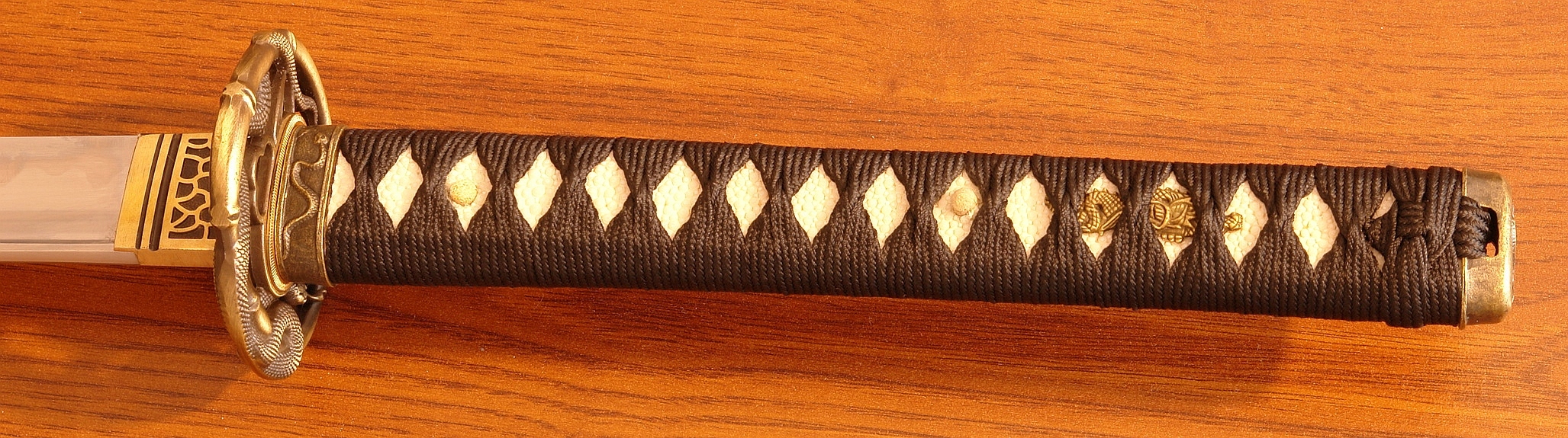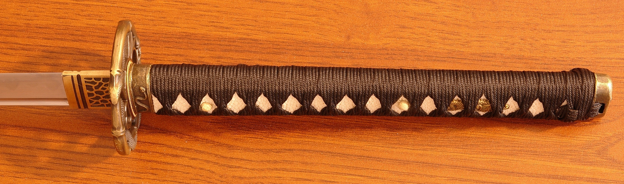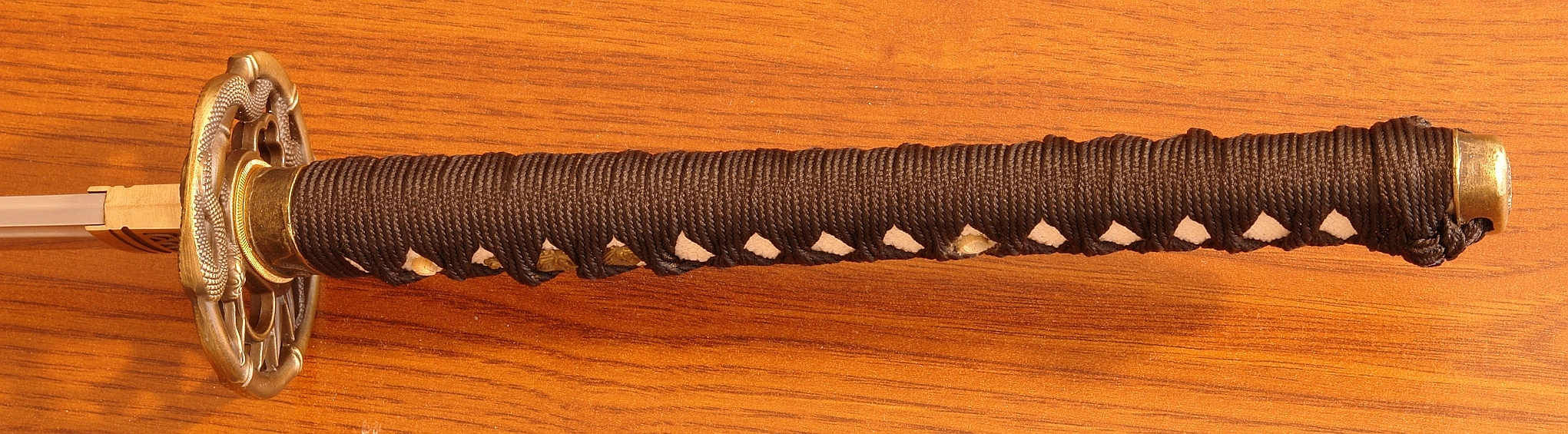 - деревянная рукоять (цука), обтянутая натуральной кожей ската (самэ-гава), черная шелковая тесьма (цука ито) (вискоза).