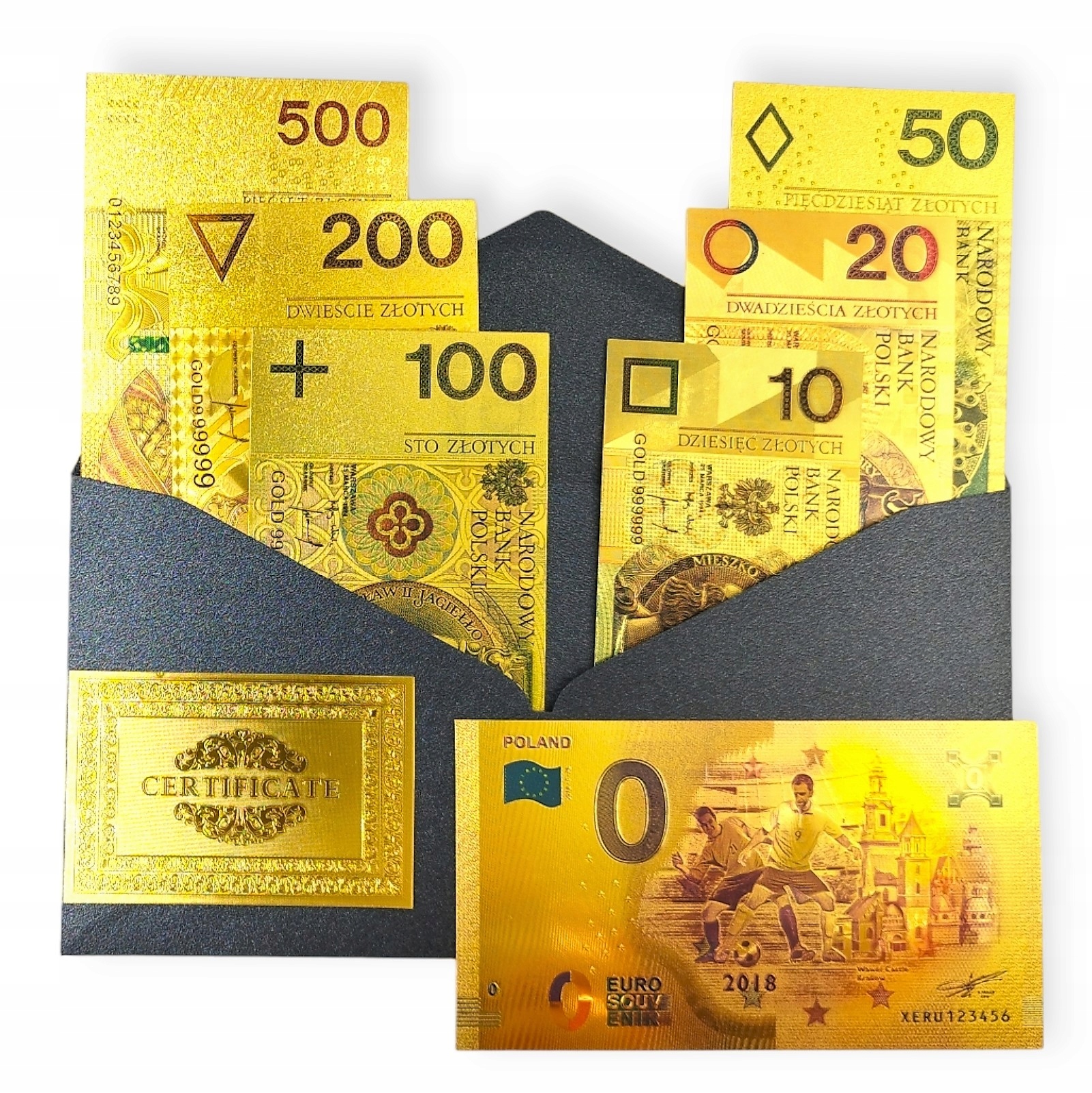 Гарний колекційний НАБІР позолочених польських банкнот із СЕРТИФІКАТОМ