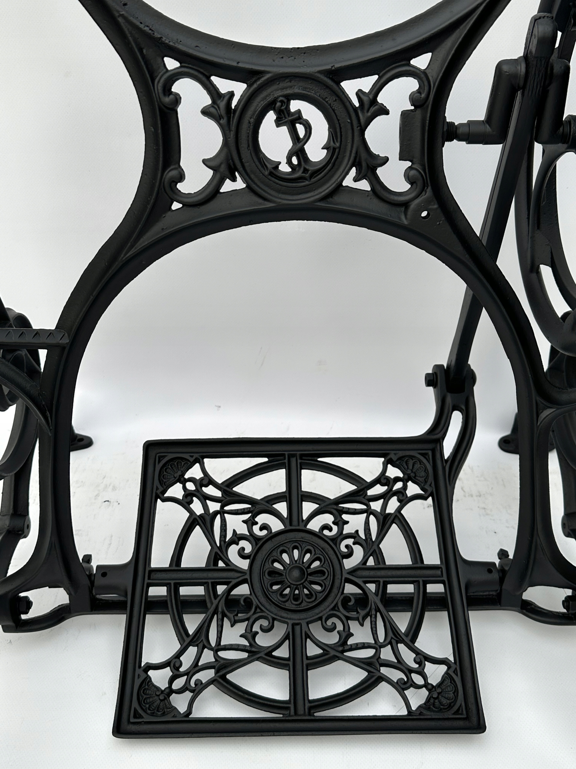 Предмет продажи — старая чугунная основа от швейной машины KOHLER. Очень красиво оформлен узор с якорем посередине. Реже — единственный в своем роде экземпляр на Аллегро. Найти стол с таким богатым декором становится все труднее. Оба колеса находятся внизу.