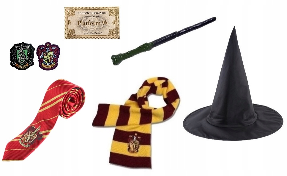 - Набор из 7 предметов: Халат с капюшоном, шарф, палочка, галстук, шляпа, билеты, вкладыши.