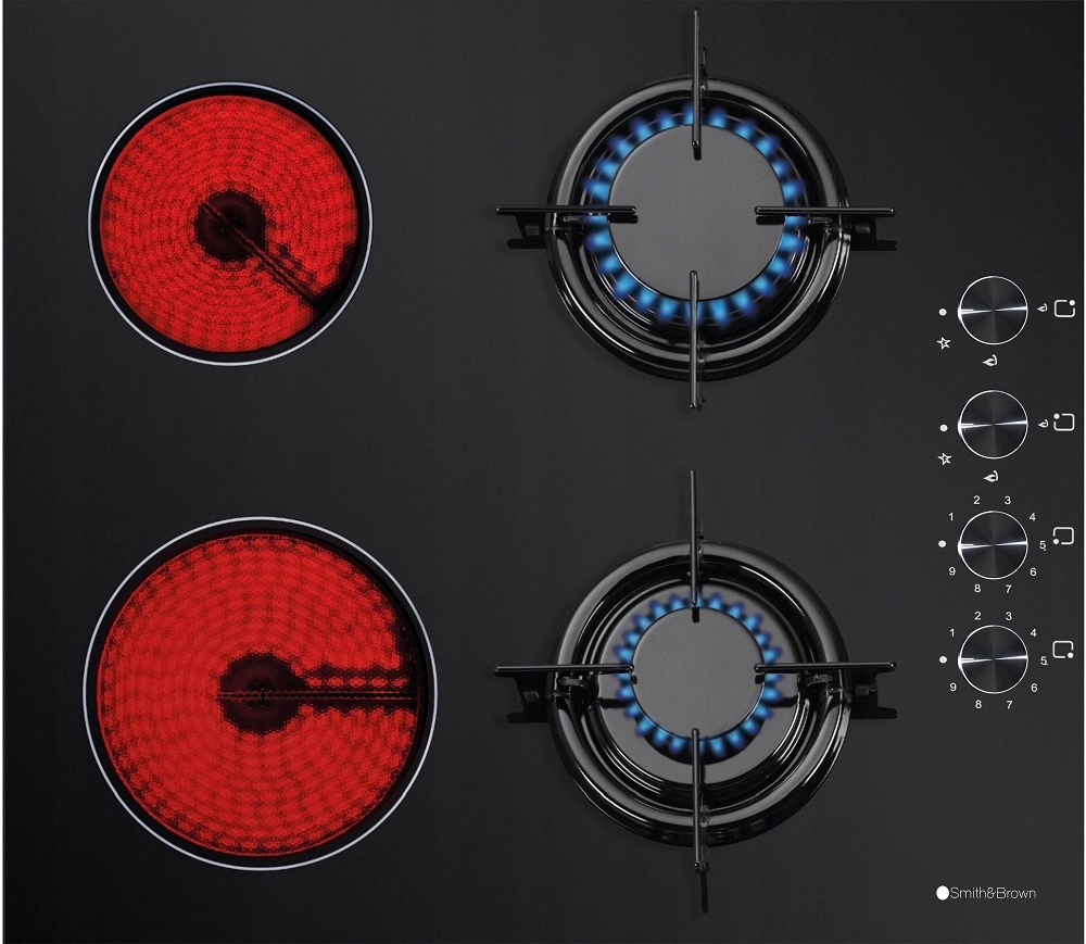 ✅ Количество варочных зон: 2 газовые горелки и 2 электрических поля