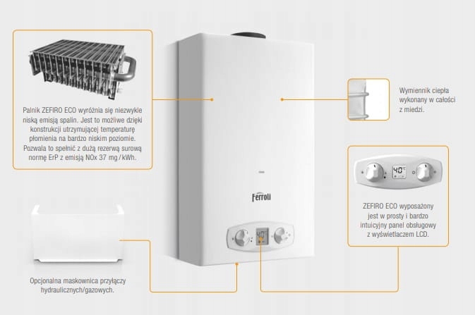 Газовый водонагреватель ZEFIRO ECO LPG 7,1–18,9 кВт, ЖК-дисплей