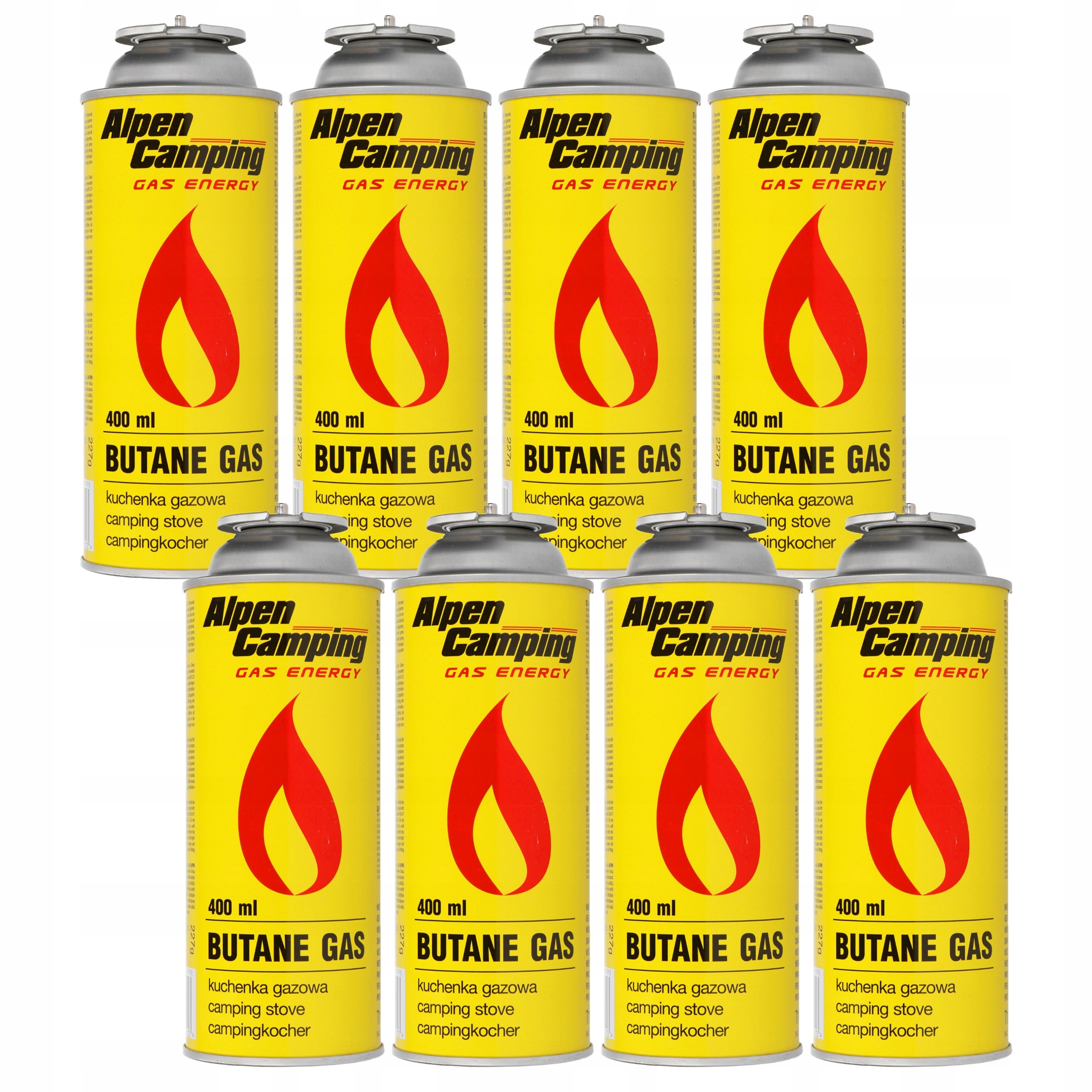 8x КАРТРИДЖ ALPEN CAMPING 400 МЛ - ГАЗ БУТАН