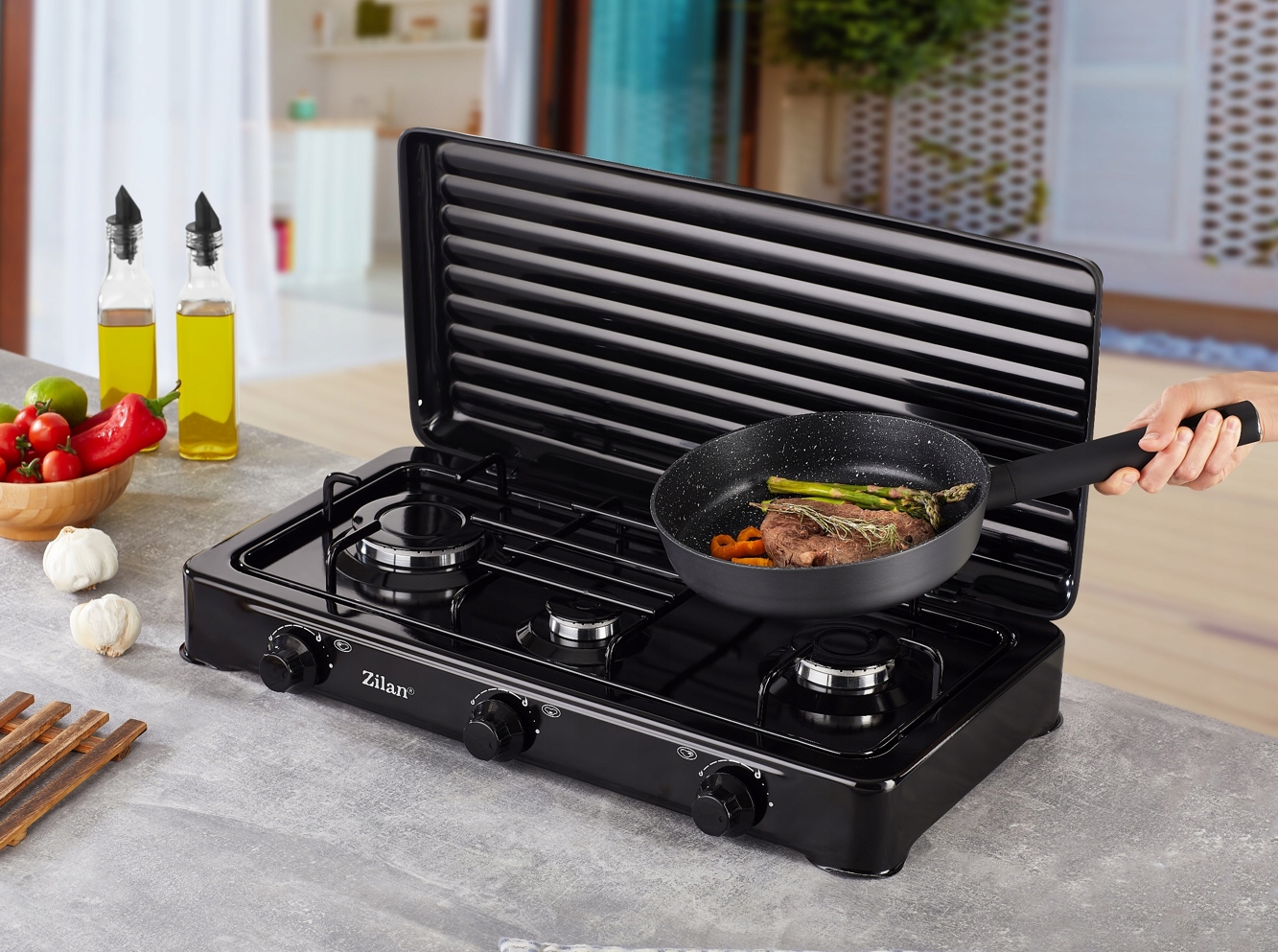 ГАЗОВАЯ ПЛИТА С 3 КОНФОРКАМИ идеально подходит для мест, где невозможно подключить установку природного газа. Вы сможете быстро и легко приготовить любимые блюда.