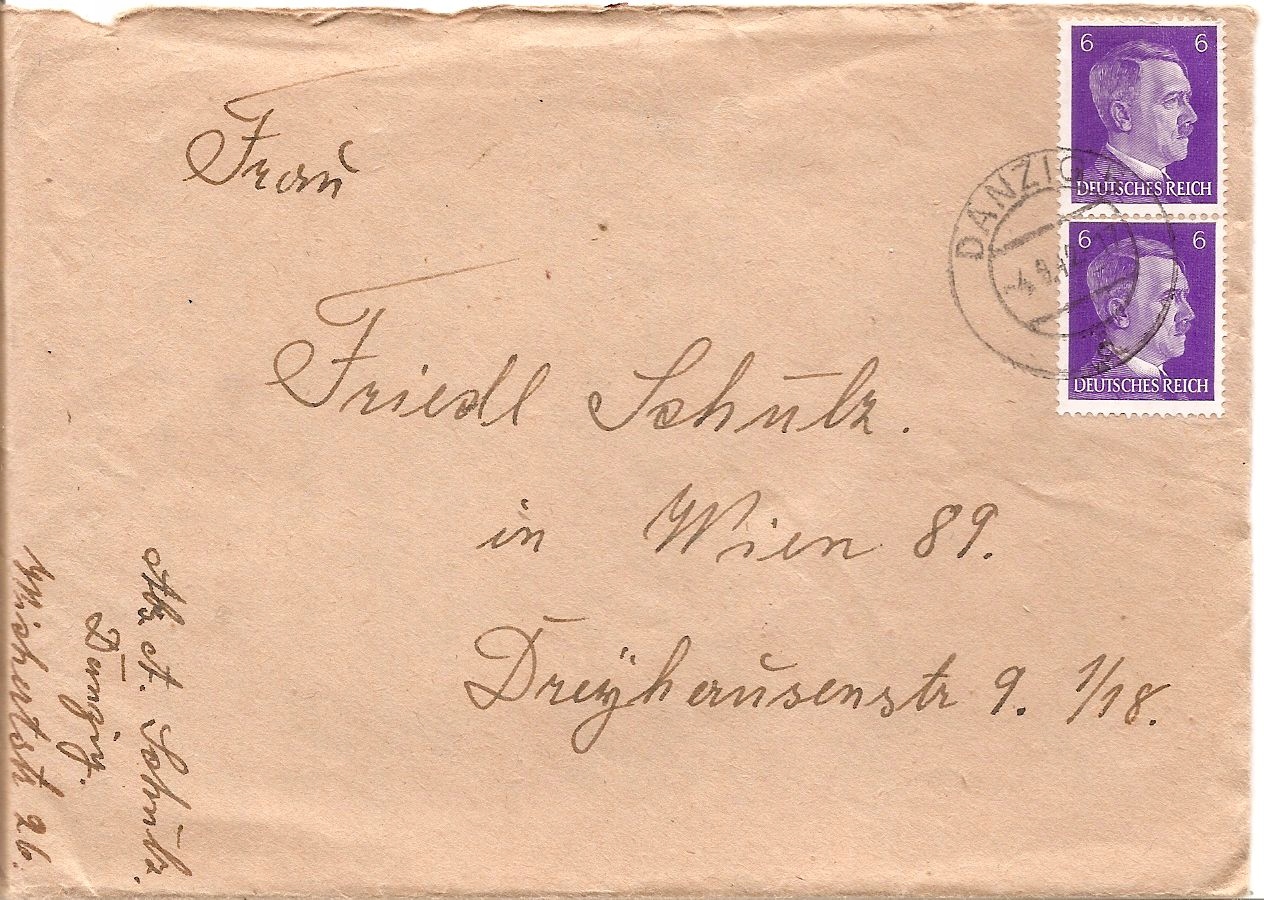 GDAŃSK -TRZECIA RZESZA -DANZIG -koperta+korespondencja -obieg 1943 rok