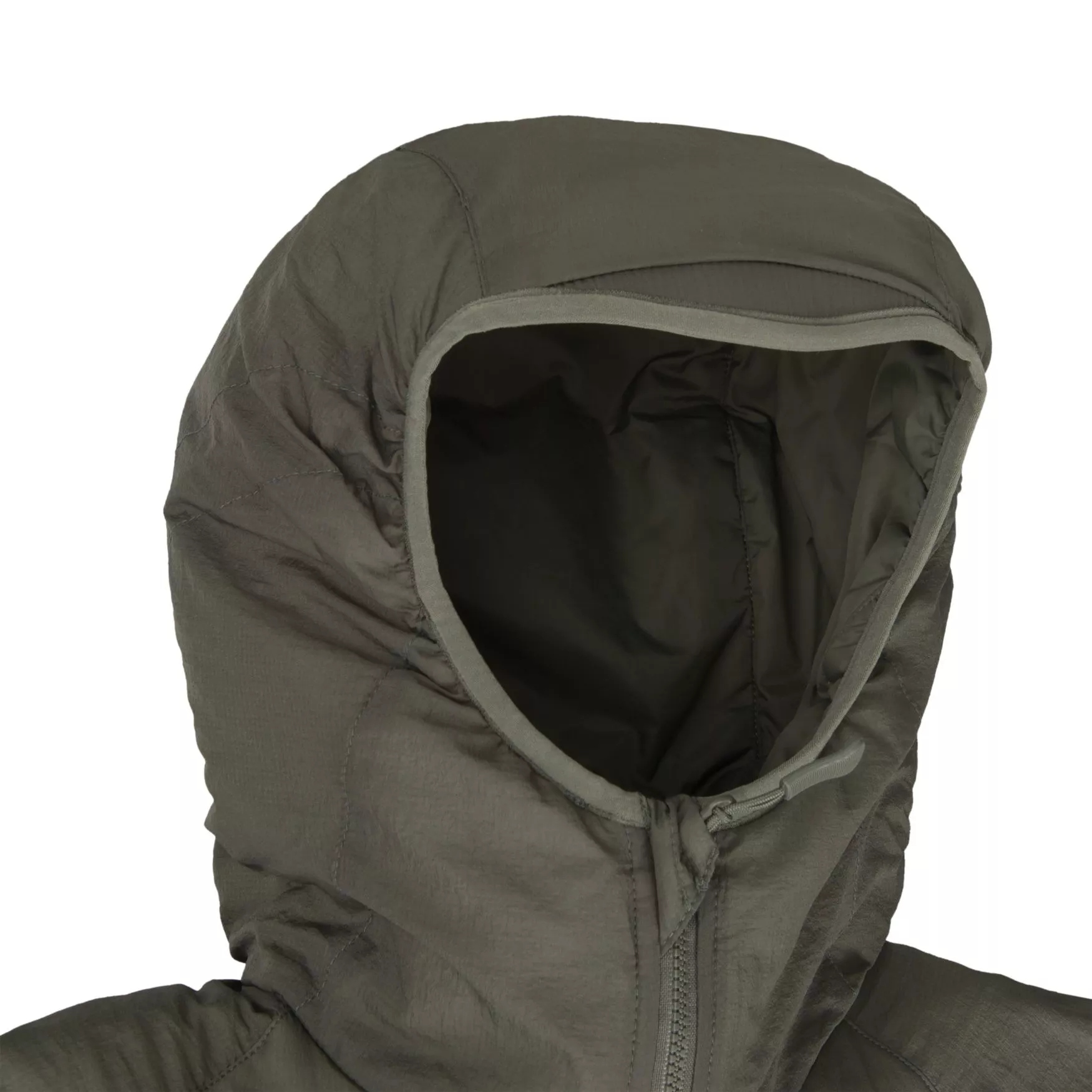 Helikon Wolfhound Hoodie - это легкая куртка с капюшоном, которую можно использовать в качестве независимого изоляционного слоя или в качестве изоляционного слоя в сочетании с мягкой или жесткой скорлупой. Изоляция Apex ClimaShield , используемая в куртке . Обгревает пользователя во всех условиях. В случае тренера он быстро высыхает.