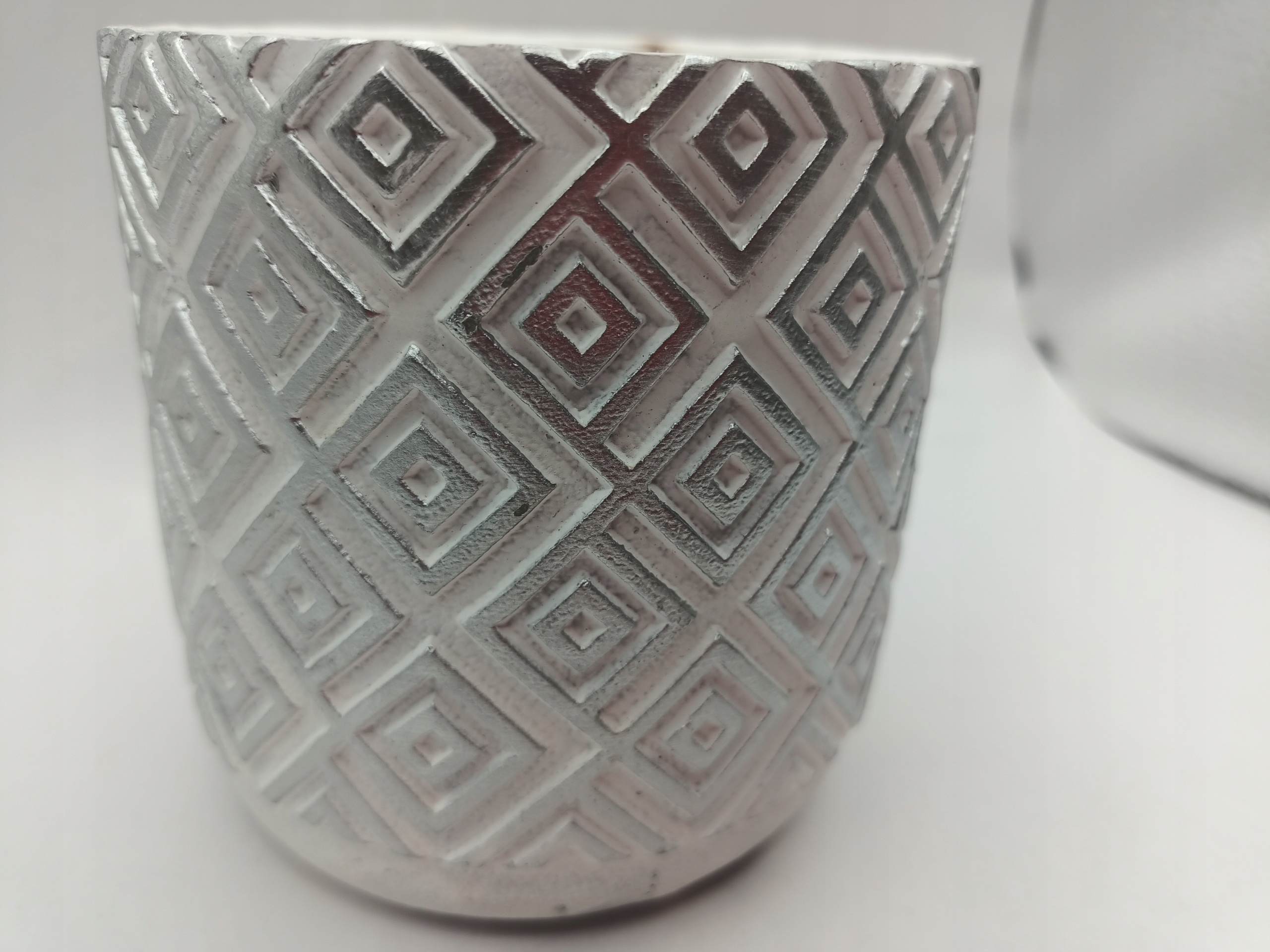Геометрические узоры с горшечным цветом белые и серебряные цвета