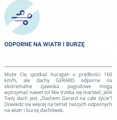 На вас может обрушиться ураган со скоростью 160 км/ч, но крыши GERARD, устойчивые к экстремальным погодным явлениям, выдержат и это! Не беспокойтесь, если ваша крыша — «Крыша Джерарда на всю жизнь»! Узнайте больше о нашей черепице, устойчивой к ветру и шторму.