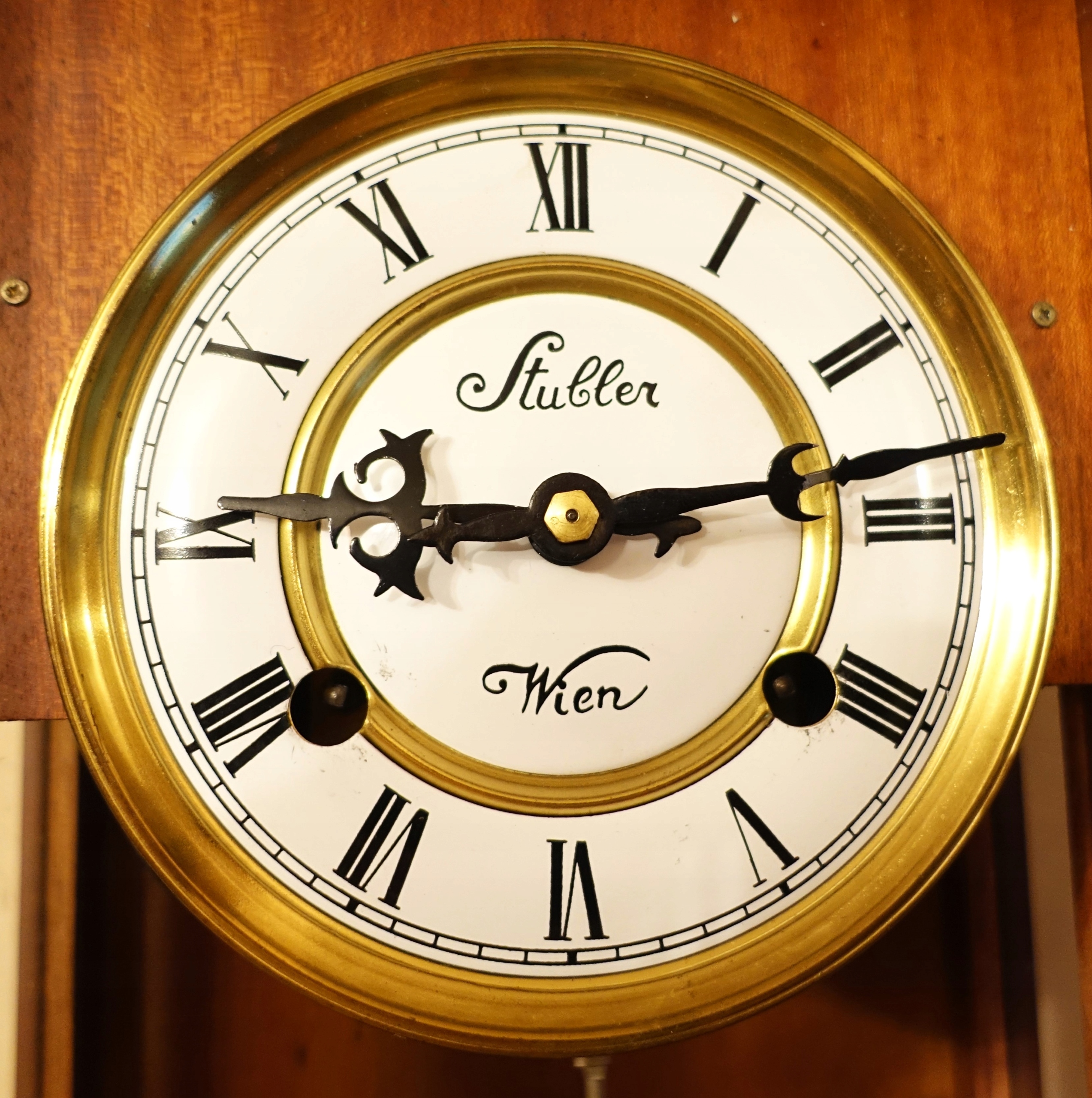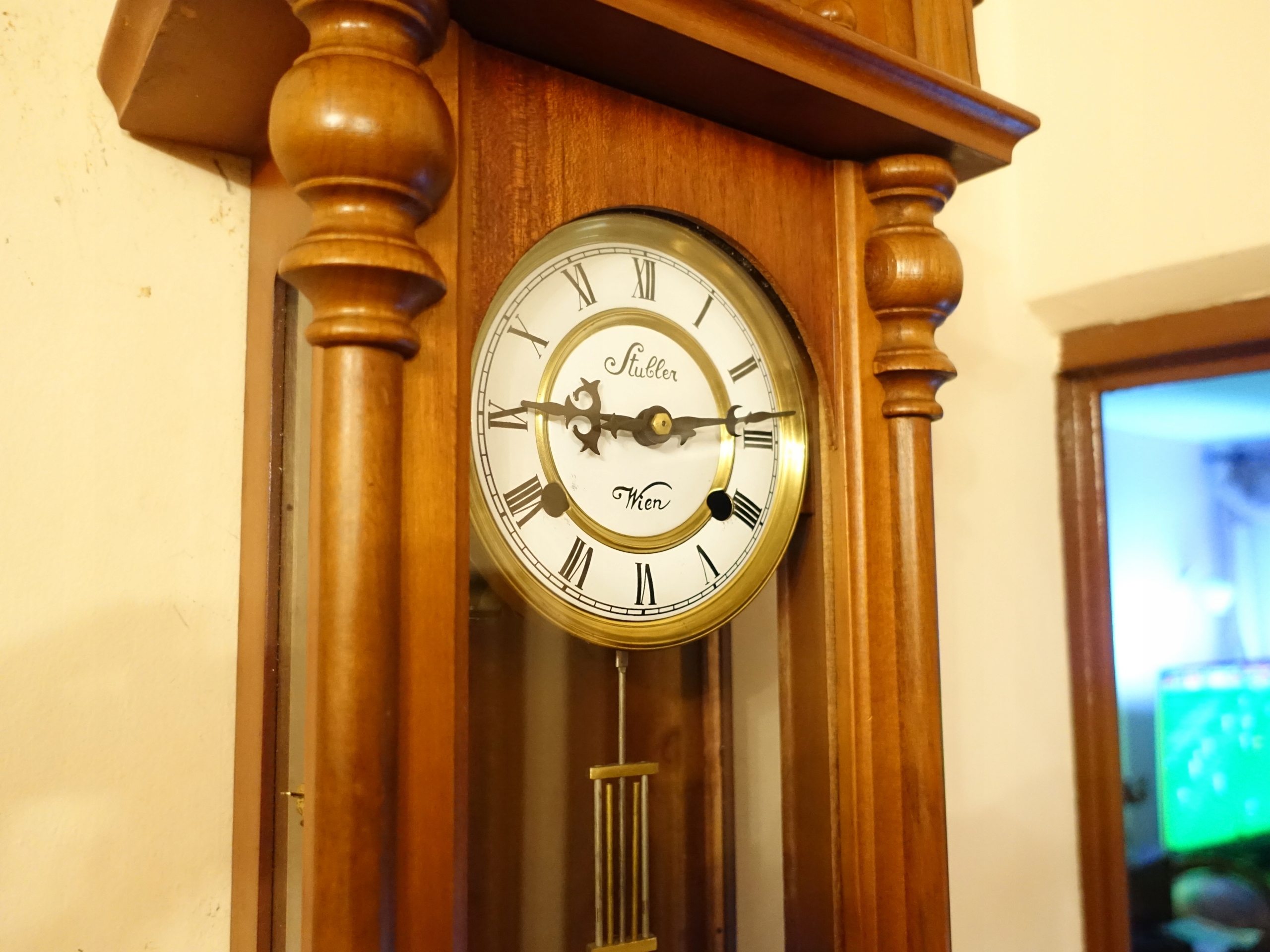 Механизм часов работает должным образом. Часы, стучат полные часы и половины на спиральном гонге,