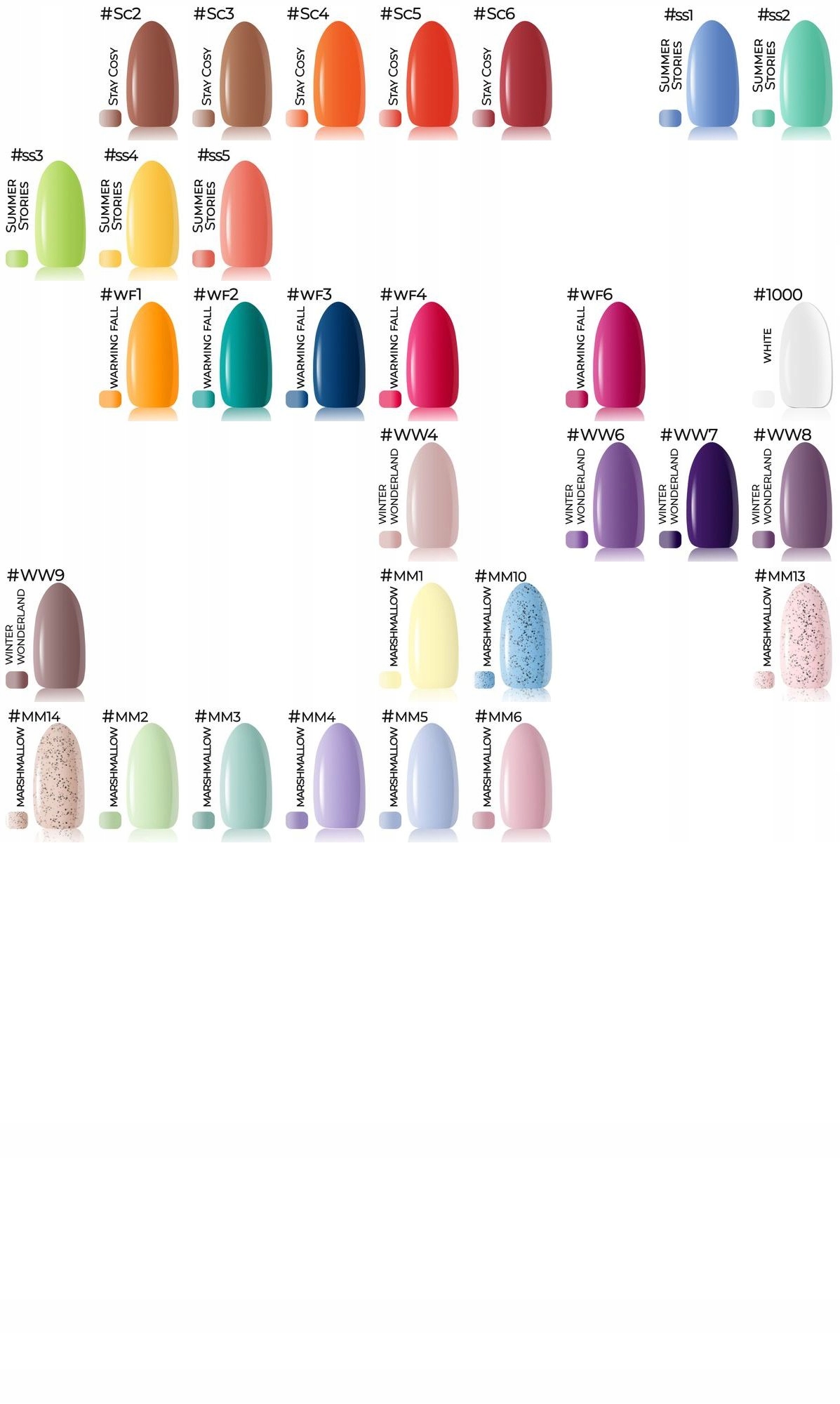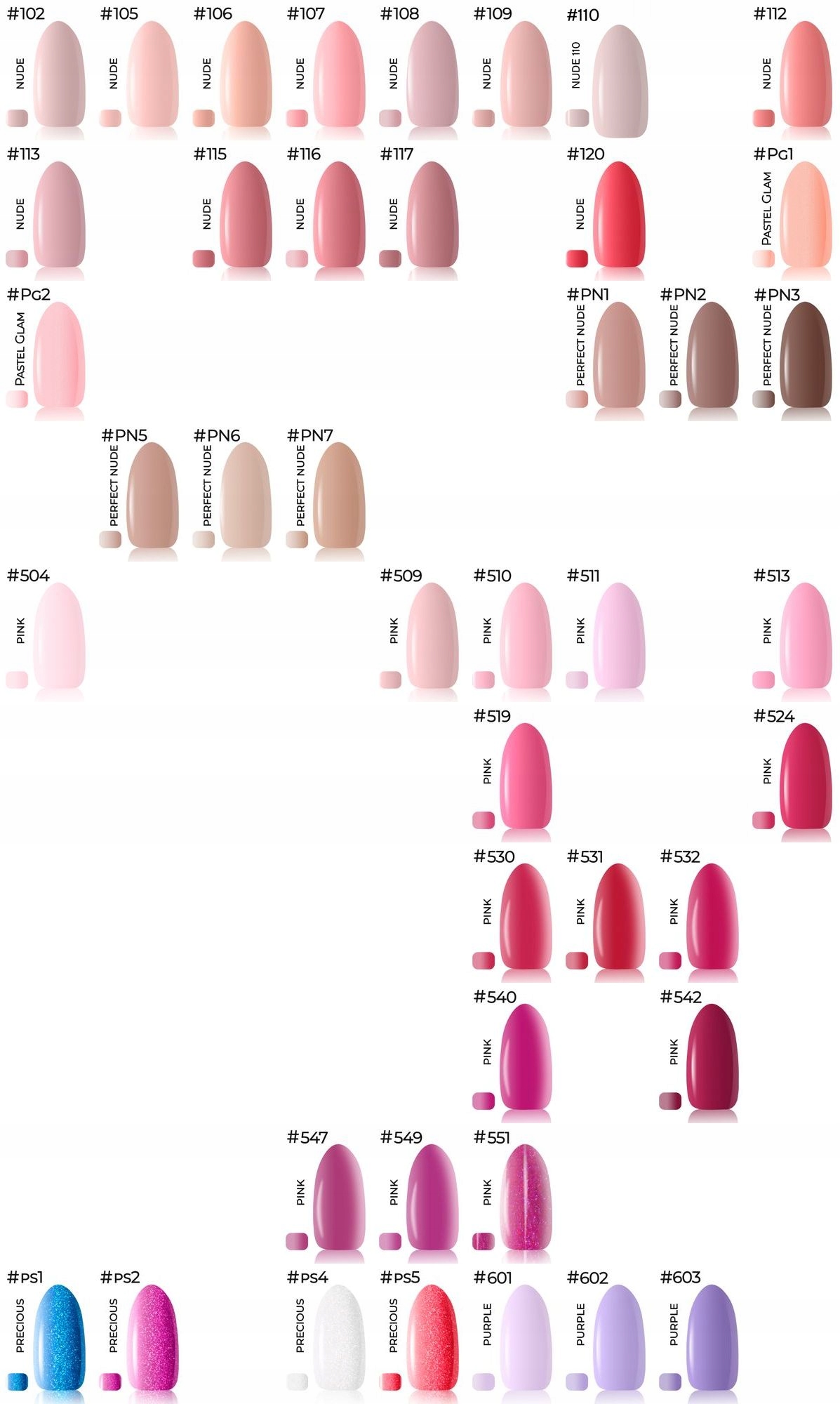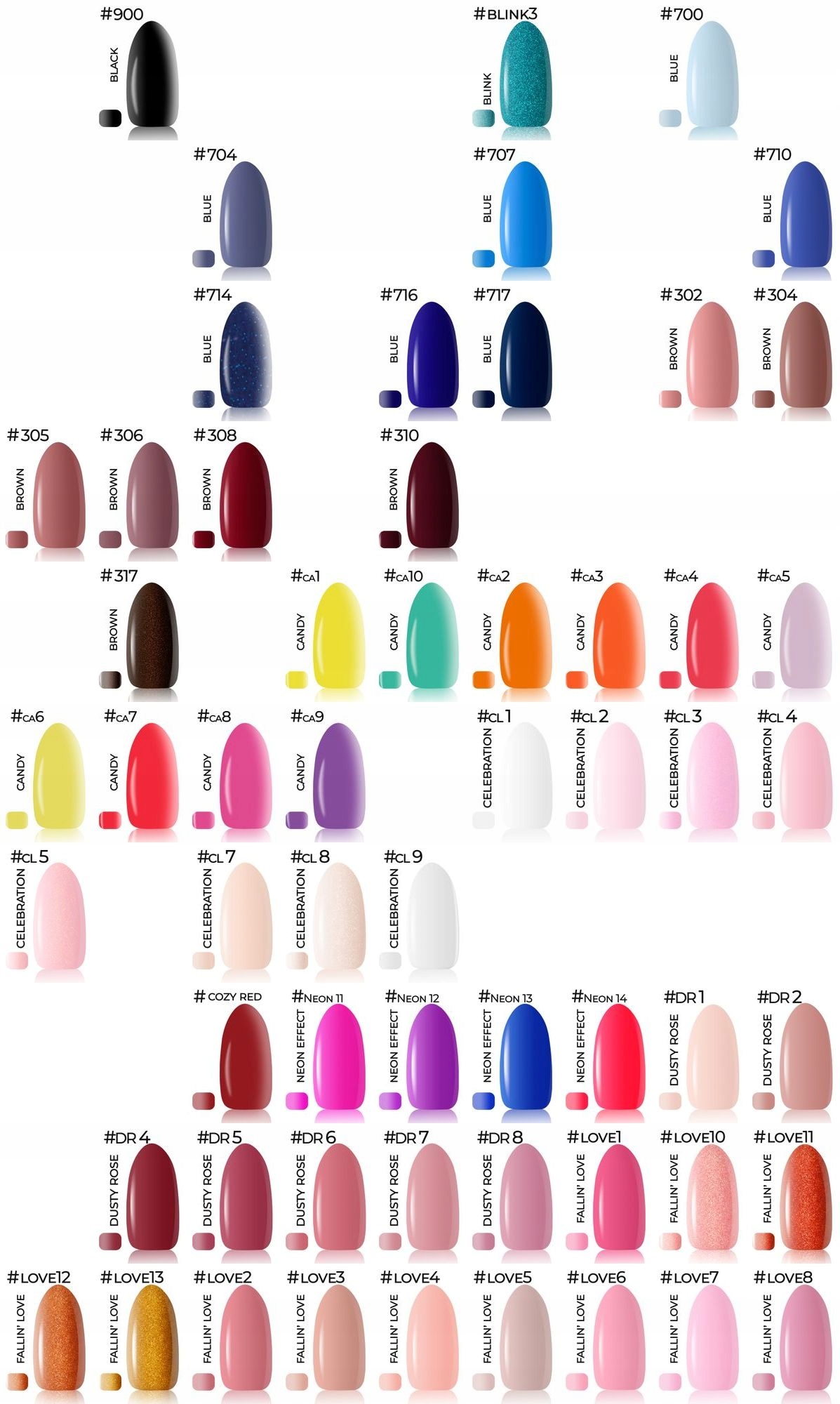 При выборе цвета в сообщении продавцу, пожалуйста, предоставьте цветовые цифры (без имен коллекций), которые находятся в верхнем левом углу каждого цвета лака. Это значительно ускорит процесс упорядочения