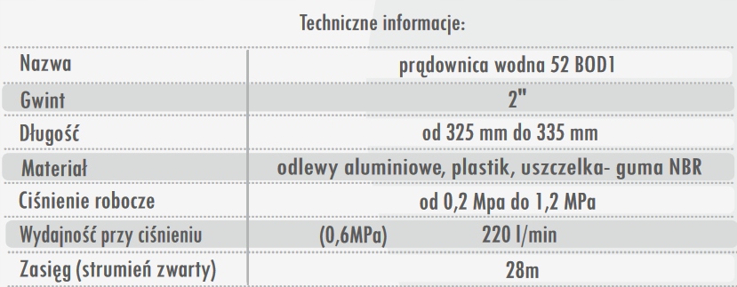 BOD1 52 ВОДЯНАЯ ФОРСУНКА ПОЖАРНОГО ГИДРАНТА С РОЗЕТКОЙ BODTECH 1 ДЮЙМ