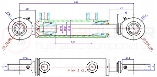 Гидравлический цилиндровый цилиндр 2-Str 32/20/200 Skok 200 мм L: 386 Гидролдер