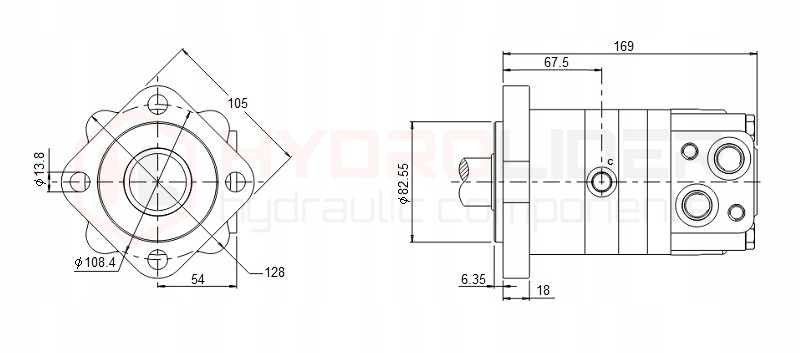 Гидравлический двигатель ws danfoss 80cm3/obr вращение: 843 об/мин 32 мм вал