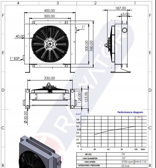 Компактный, очень легкий гидравлический масляный холодильник, предназначенный для охлаждения устройств, где требуется высокая производительность и производительность