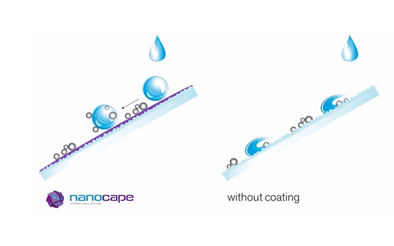 Нанокапное стекло и керамика - это покрытие, содержащее наночастицы, которые защищают стекло и керамические поверхности от загрязнения, в первую очередь застекленные плитки. Благодаря использованию нанотехнологий, тонкое гидрофобное покрытие, защищающее стекло, окна и керамика, производится от формирования пятен, грязи, отложений и набегов. Вода течет быстрее, оставляя нежелательные следы известняка, мыло и другую грязь. Нанокап для стекла и керамики также подходит для керамотиков, композитных раковинов, керамики, умывальников, керамических оболочек