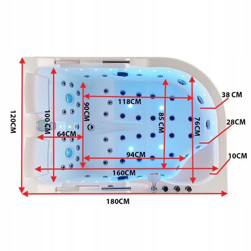 37 PCS Светодиодных 7 цветов. Корпус ванны ванна находится на раме из нержавеющей стали !!! Parallel air (each nozzle powered separately) Serial water main (nozzles connected in a closed circuit)