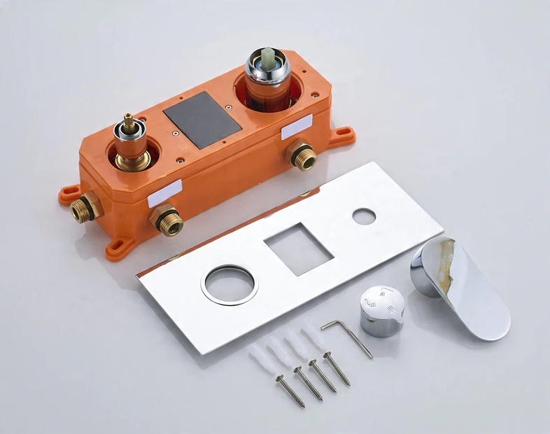 - Смеситель скрытого монтажа имеет систему крепления BOX. Помогает и облегчает профессиональную и быструю установку смесителя.