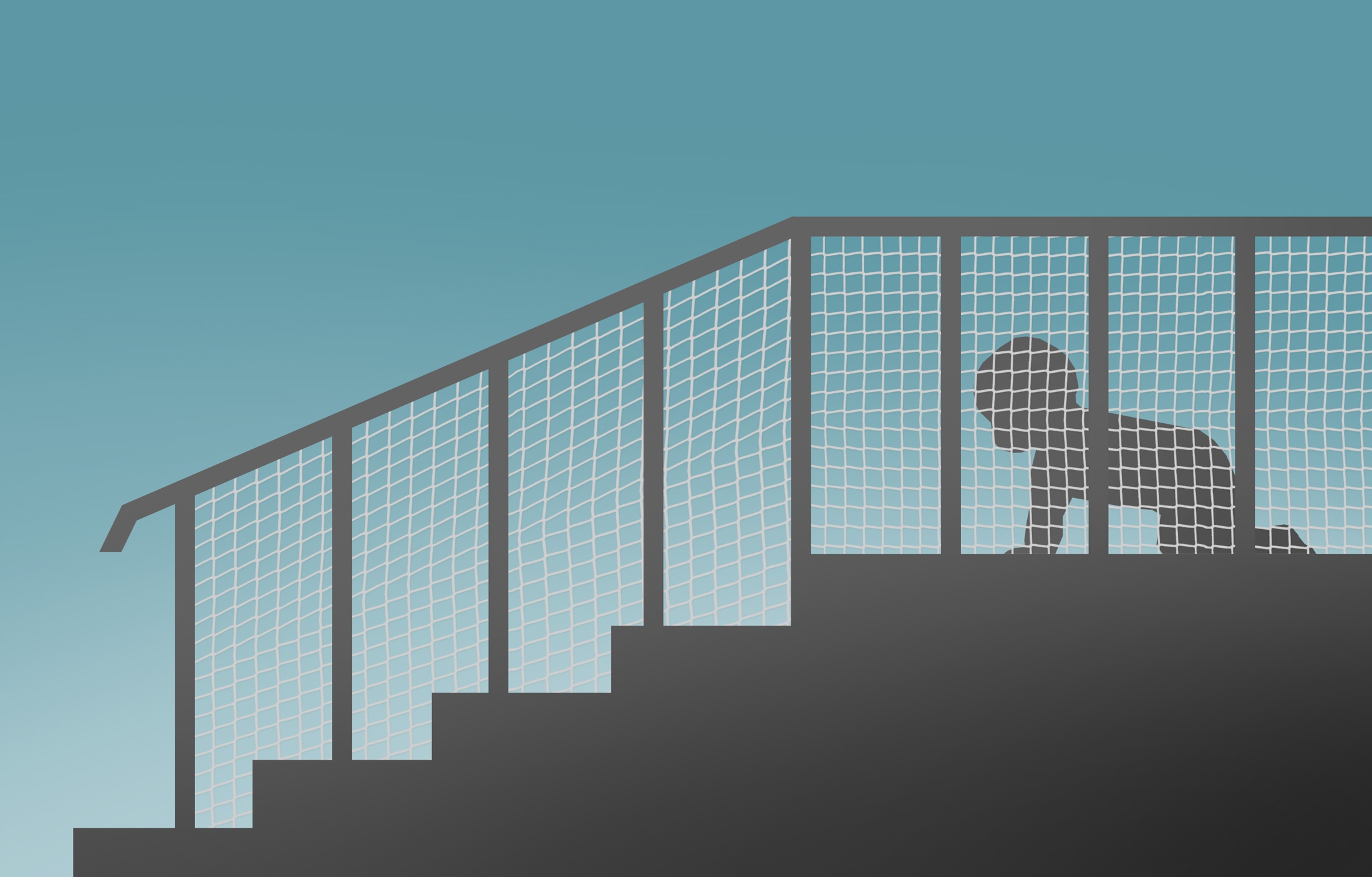 Предлагаемая нами сетка не позволяет ребенку или собаке протиснуться между поручнями барьера. Это значительно снижает вероятность выпадения или застревания на лестнице.