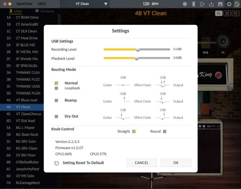 Вы можете загрузить редактор QuickTone™ со страницы продукта MG-400. Он включает в себя интуитивно понятный интерфейс для настройки параметров, перетаскивания порядка блоков, настройки SCN, сохранения патчей, загрузки патчей, экспорта патчей, загрузки IR, настройки маршрутизации USB и НАСТРОЕК CTRL; и все это с помощью QuickTone™.