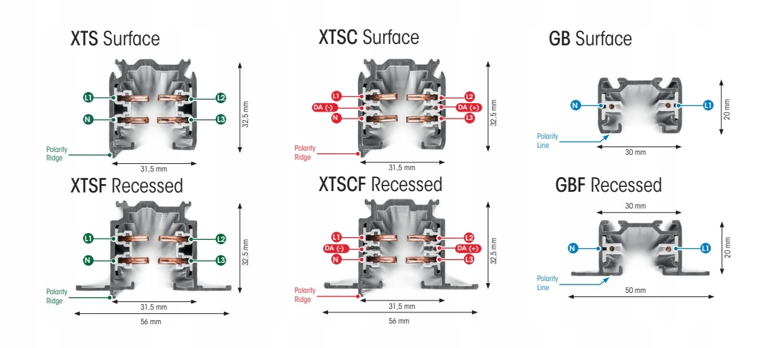 - Управление импульсом, то есть 3-фазная версия DALI, монтированного (xtsc) и скрытой (xtscf)