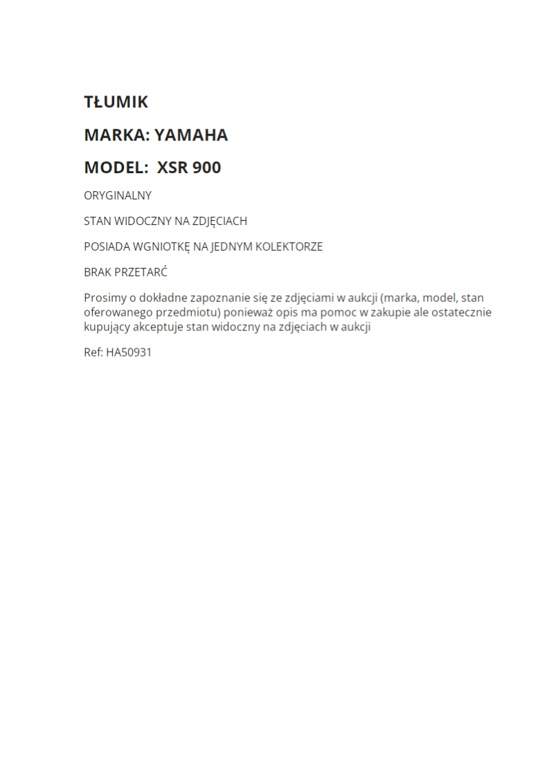 Оплачивая «Muffler Manifold Yamaha XSR 900 KO0», вы можете быть уверены, что данное изделие из каталога «Глушители» будет доставлено из Польши и проверено на целостность. В цене товара, указанной на сайте, учтена доставка из Польши. Внимание!!! Товары для Евросоюза, согласно законодательству стран Евросоюза, могут отличаться упаковкой или наполнением.