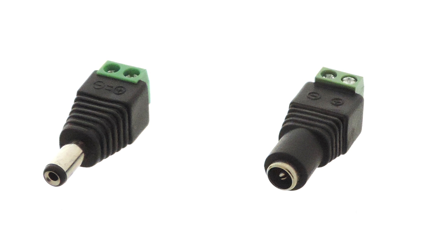 Розетка постоянного тока для подключения кабеля с проводами «+» и «-», облегчающая подключение ленты к источнику питания. Просто вставьте вилку постоянного тока от блока питания в розетку и прикрутите кабели, например, светодиод от светодиодной ленты, «+» под «+» и «-» под «-».
