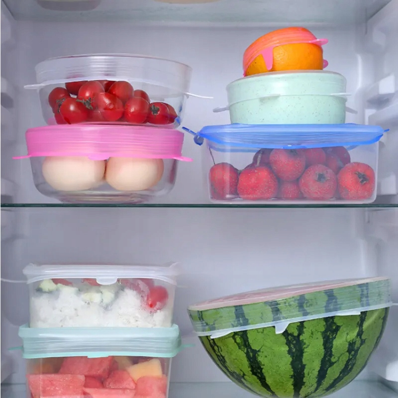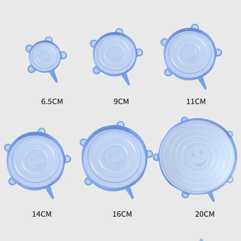 Набор из 6 круглых многоразовых крышек из гибкого силикона, подходящего для сосудов и контейнеров различной формы. p>