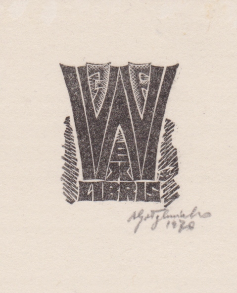 Gołębniak Jan Antoni ekslibris z inicjałem W sygnowany ołówkiem 1962