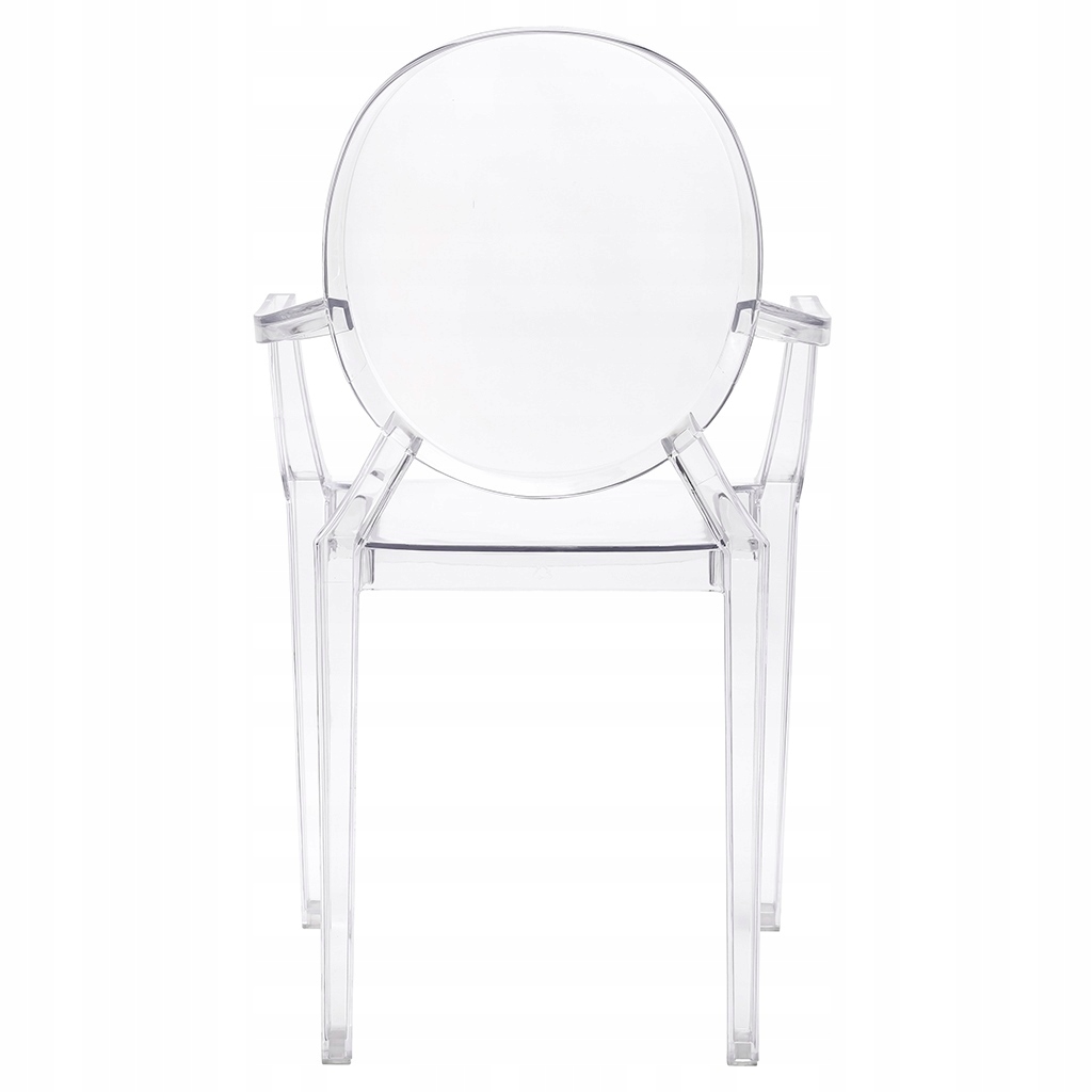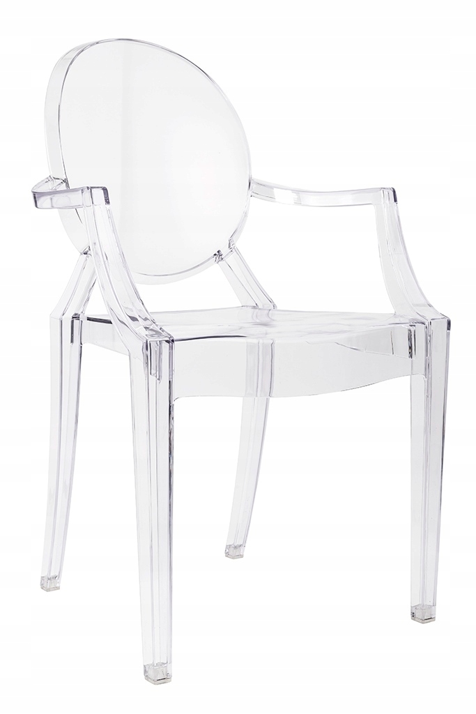 Стул полностью сделан из прозрачного поликарбоната. Это очень прочный материал, характеризующийся высокой прочностью (до 150 кг) и ударом. Эта модель относится к стилю мебели в стиле Луи XV. Благодаря использованию прозрачного материала, стул оптически не заменяет место. Большим преимуществом является возможность укладки (настройка одного с другой) облегчает хранение стула. Стул оснащен четырьмя резиновыми прокладками толщиной 5 мм, которые защищают подложку от повреждения.