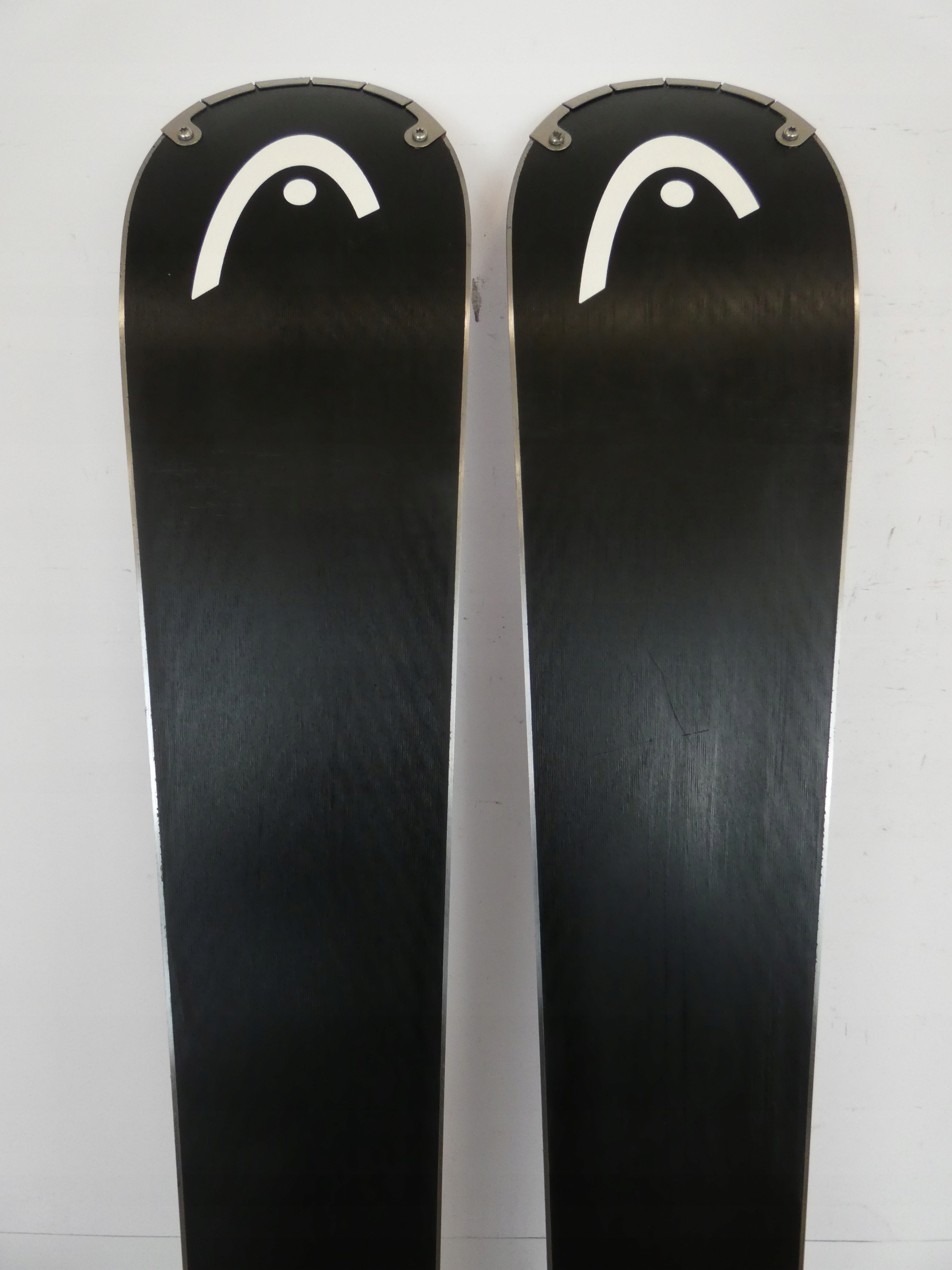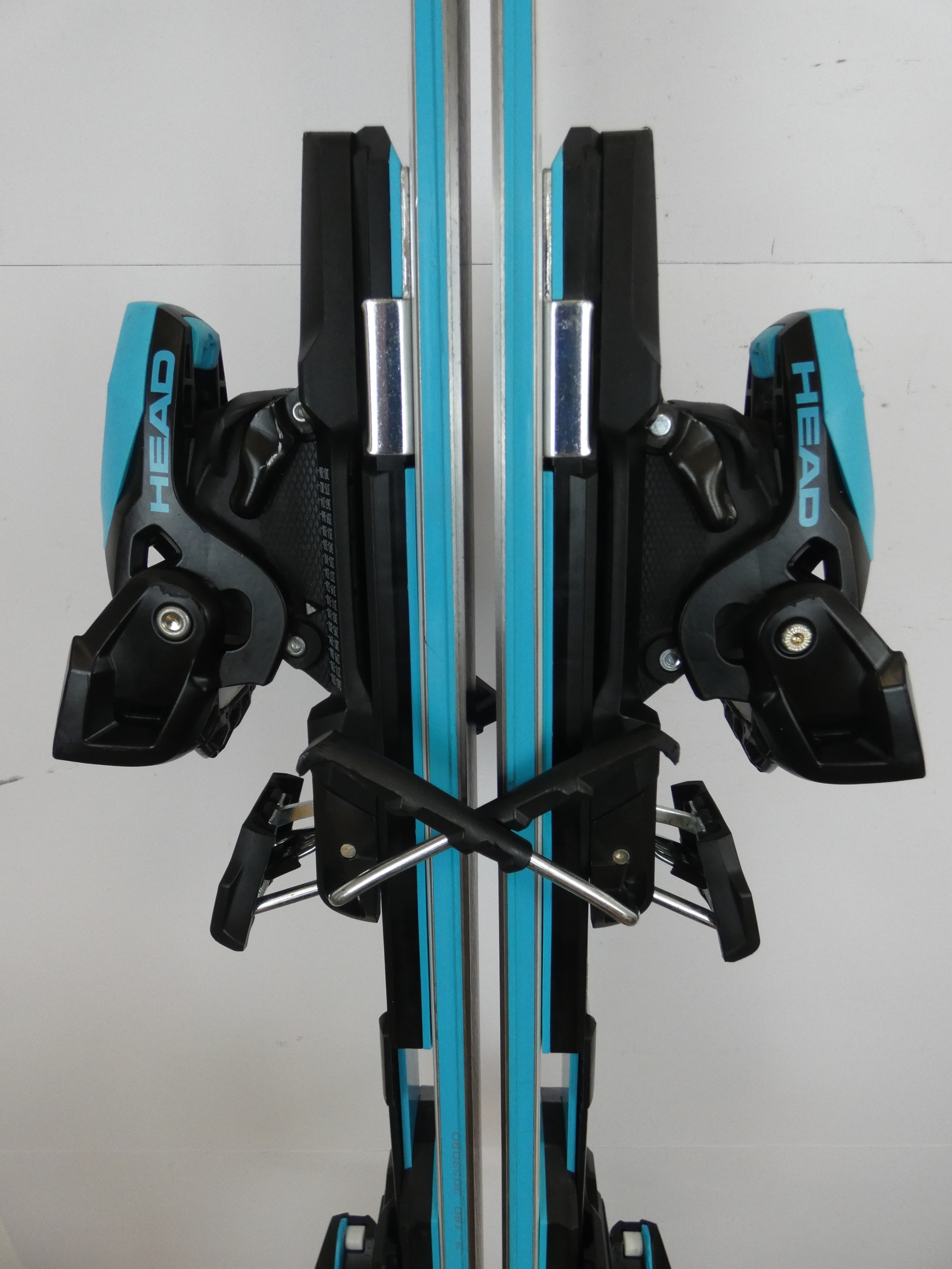 minimal traces of use - small scratches on the graphic design of skis and bindings