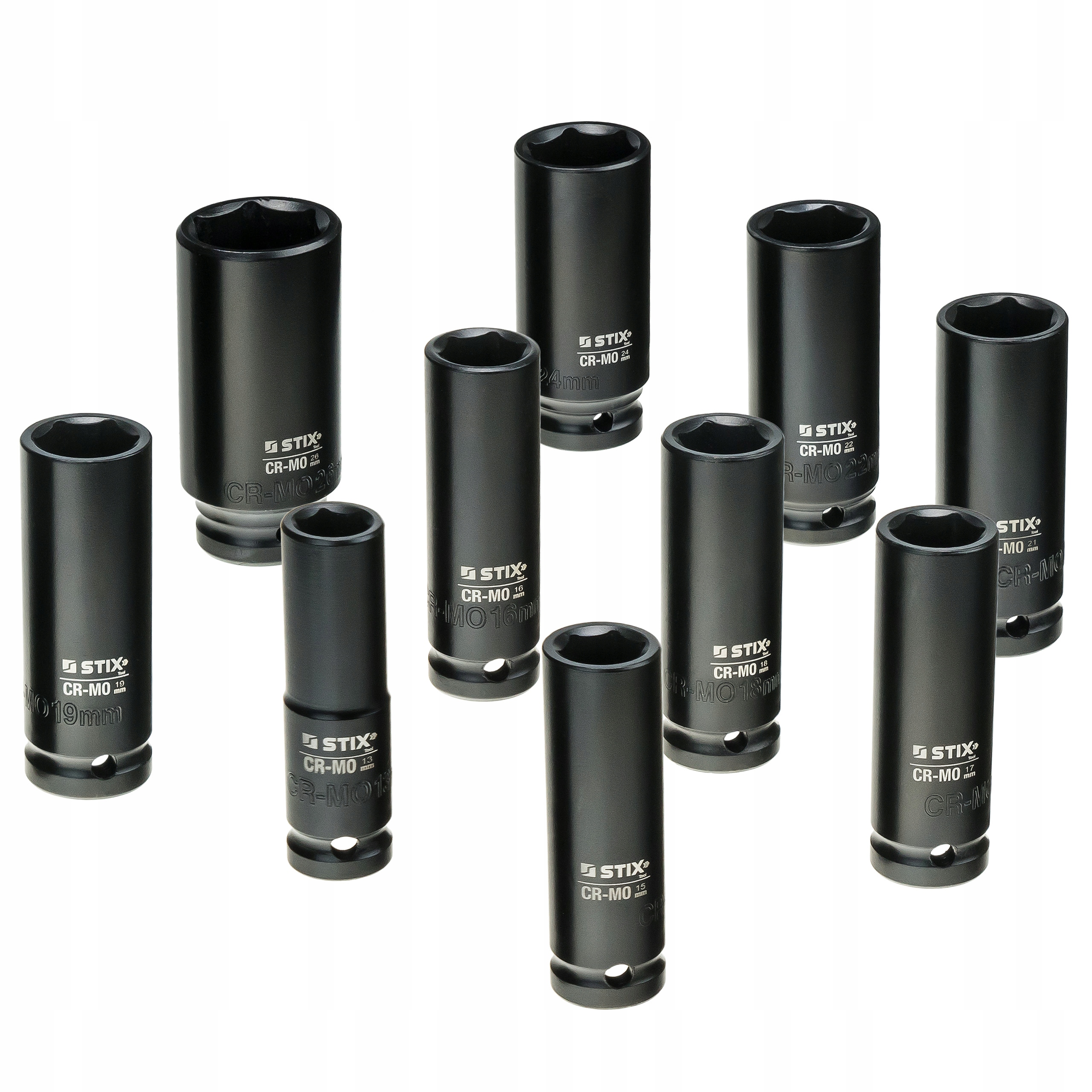 Ударные головки длинные 1/2" STT CR-MO СЕРИИ 3 – 13, 15, 16, 17, 18, 19, 21, 22, 24, 26 мм – набор в чемодане из 10 шт. – STIX Tool