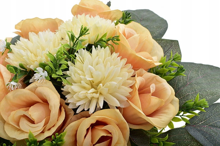 ✅ тщательно сделано из высококачественных искусственных цветов: Розы , белые орхидеи , кремовые хризантемы и декоративные зеленые