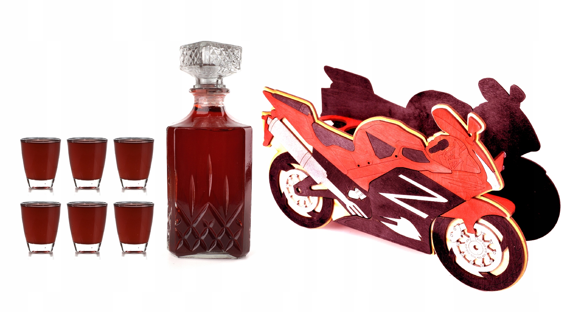 Мотоцикл мотоцикла с днем рождения Carafe Этот забавный гаджет - отличная идея для подарка на день рождения или выхода на пенсию. Набор с подставкой включает в себя стильный графин и набор из шести очков. Кроме того, на передней части подставки мы вырезали любую 3D -надпись, которая позволит продукту персонализировать.