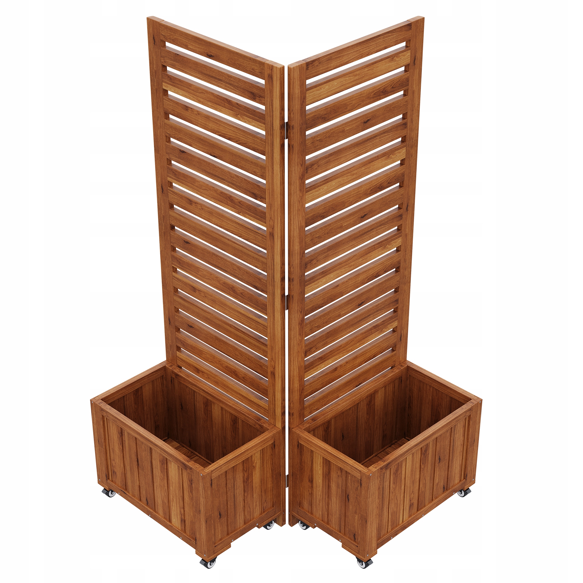 горшок, сад с сеткой в качестве помощи для лазания, коричневого горшка, твердого дерева, подходящего для сада, на дворе и террасе, со складывающими и универсальными колесами