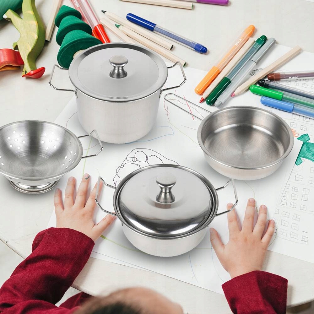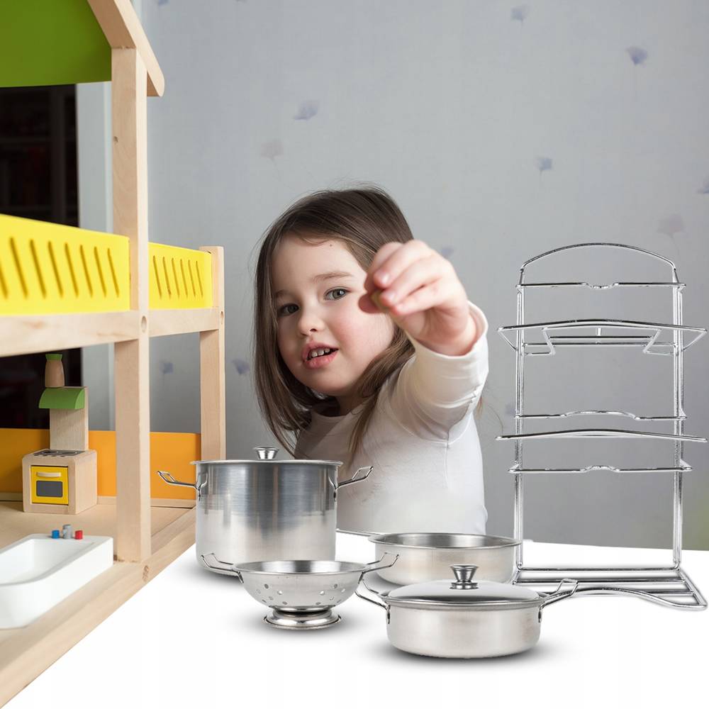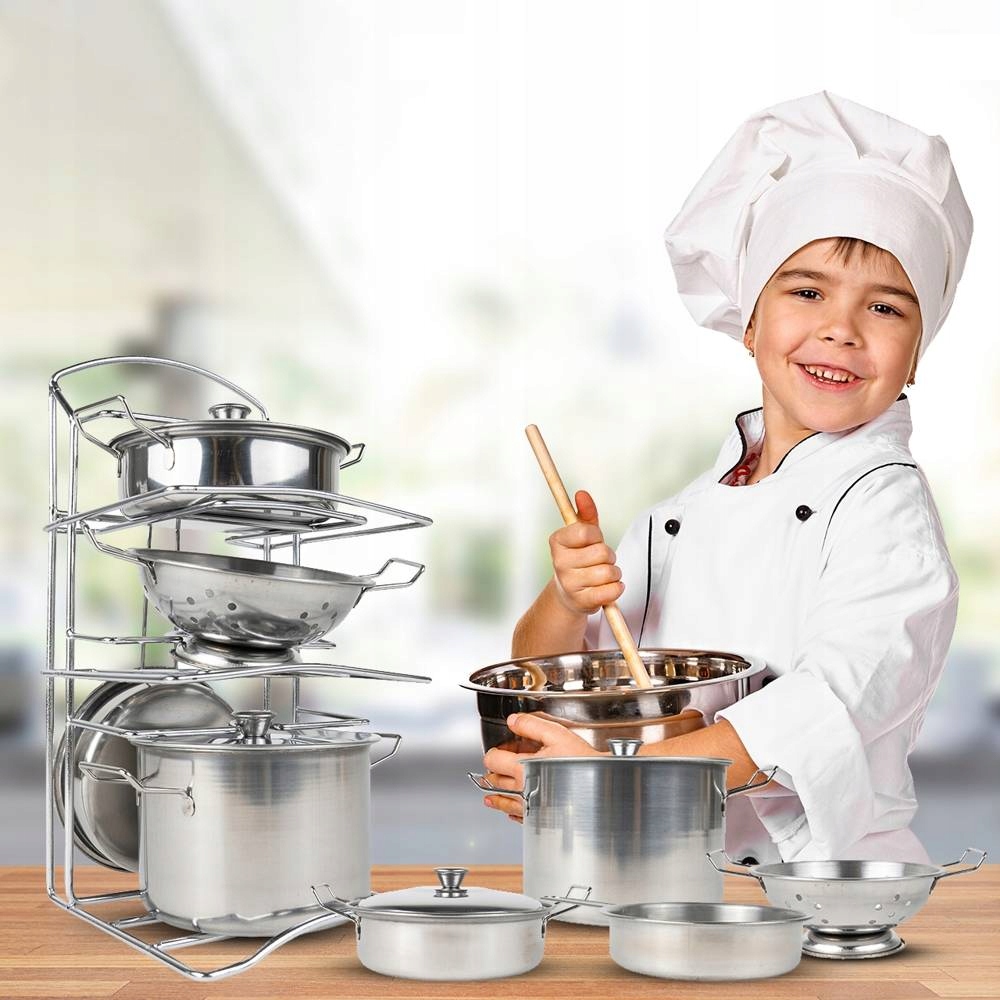 Такая игра развивает у ребенка воображение и ручные навыки, а также это приносит массу удовольствия и радости. Весь набор изготовлен из нержавеющей стали и блестяще имитирует настоящие кухонные кастрюли.