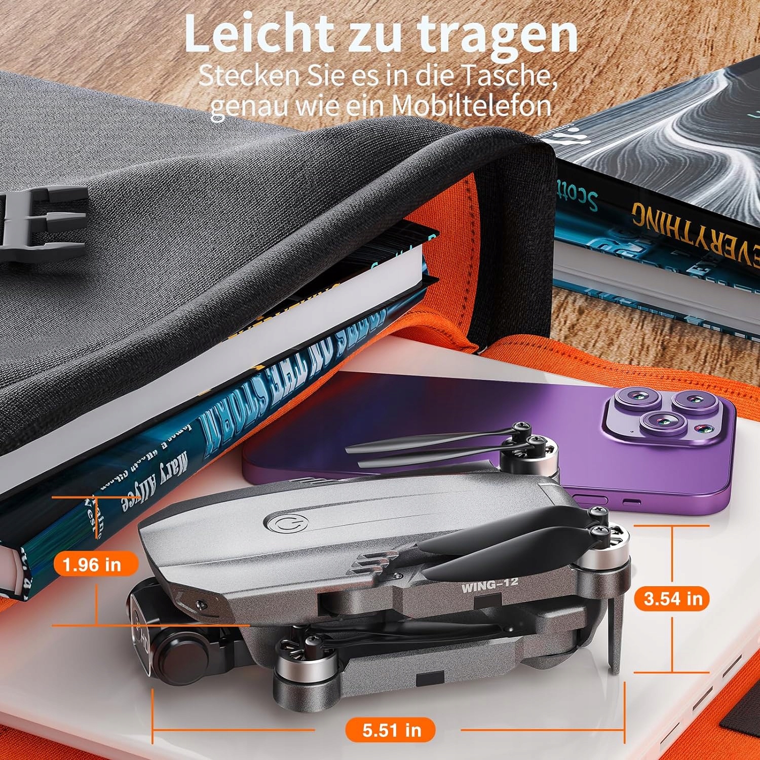 GPS-дрон Wipkviey B12 с камерой 4K, радиоуправляемый квадрокоптер с видом от первого лица и бесщеточным двигателем для начинающих взрослых, низкий возврат батареи, 249 г, 50 мин. время полета с 2 батареями
