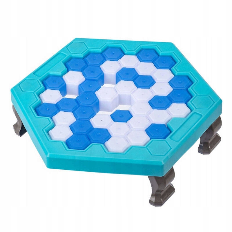 В разложенном виде игра выглядит следующим образом: лист льда, сложенный из белых и синих кубиков льда, на который мы помещаем пингвина.