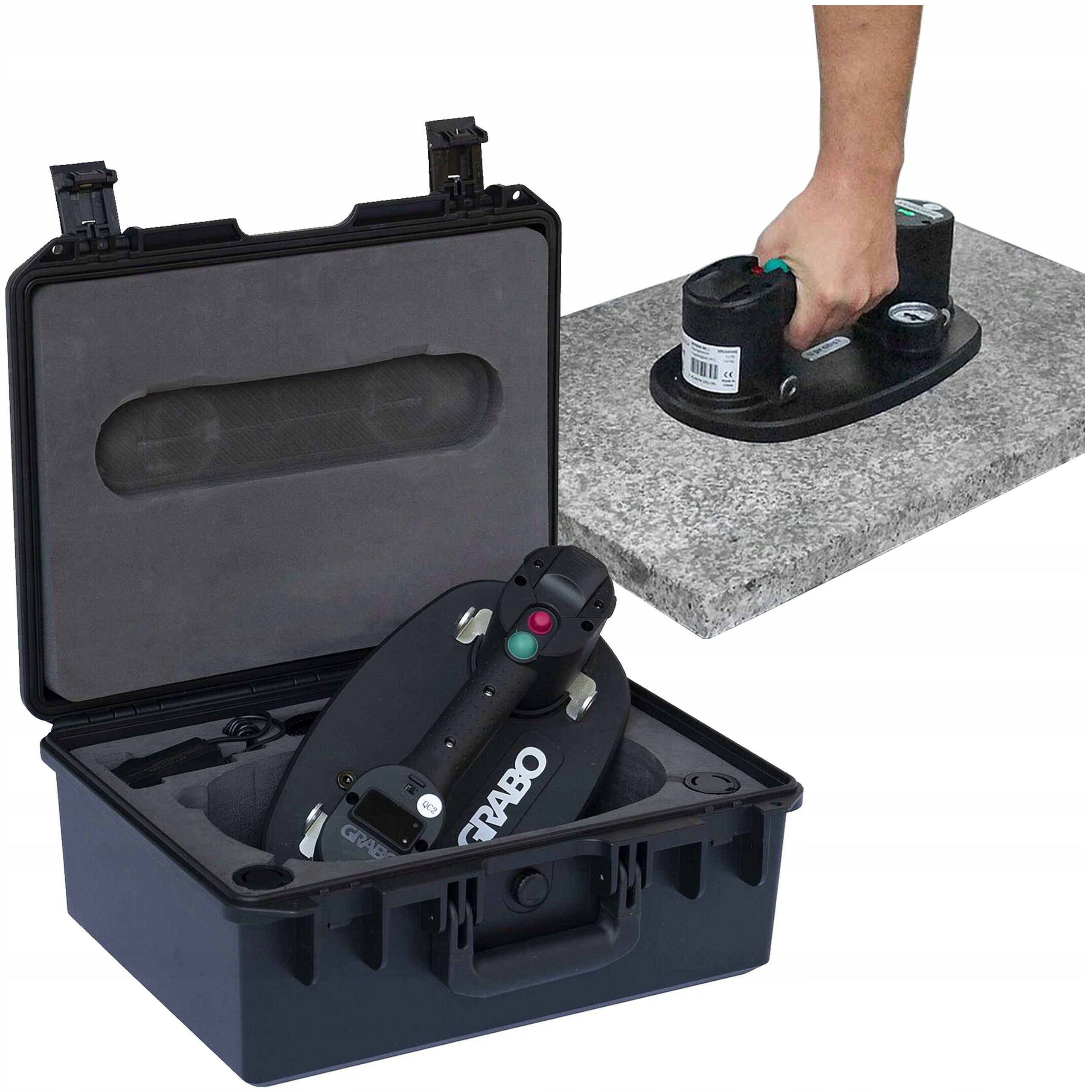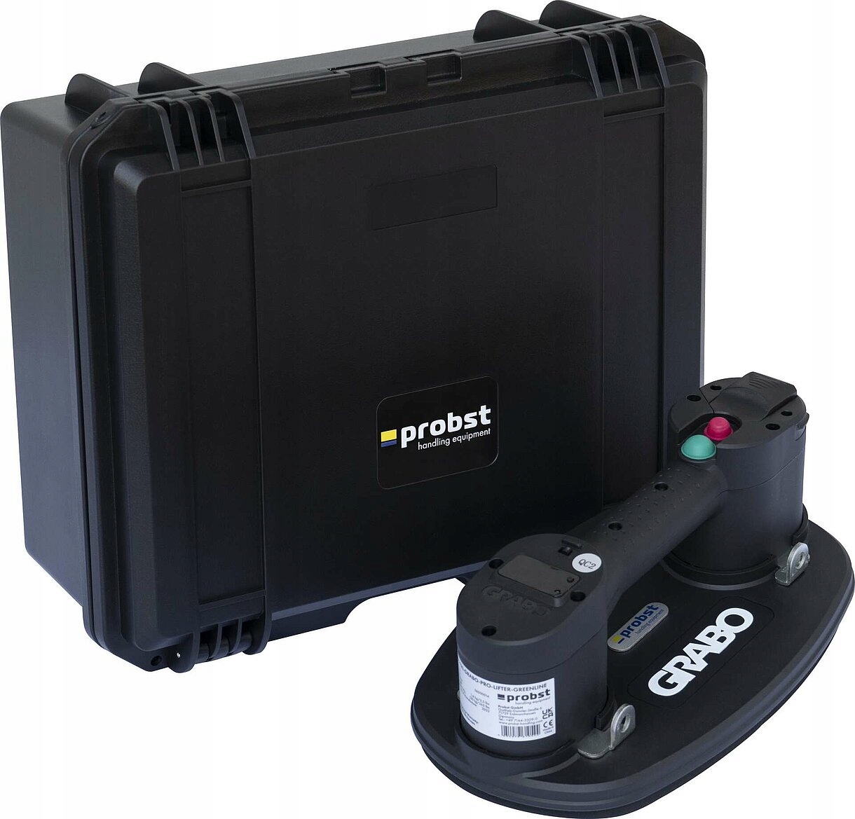 PROBST FXAH-120-GRABO-PRO-LIFTER-GREENLINE: Со встроенным реле давления. Как только будет достигнуто необходимое давление, насос отключится. Когда вакуум падает, насос снова включается. С цифровым манометром для индикации вакуума или допустимой нагрузки.
