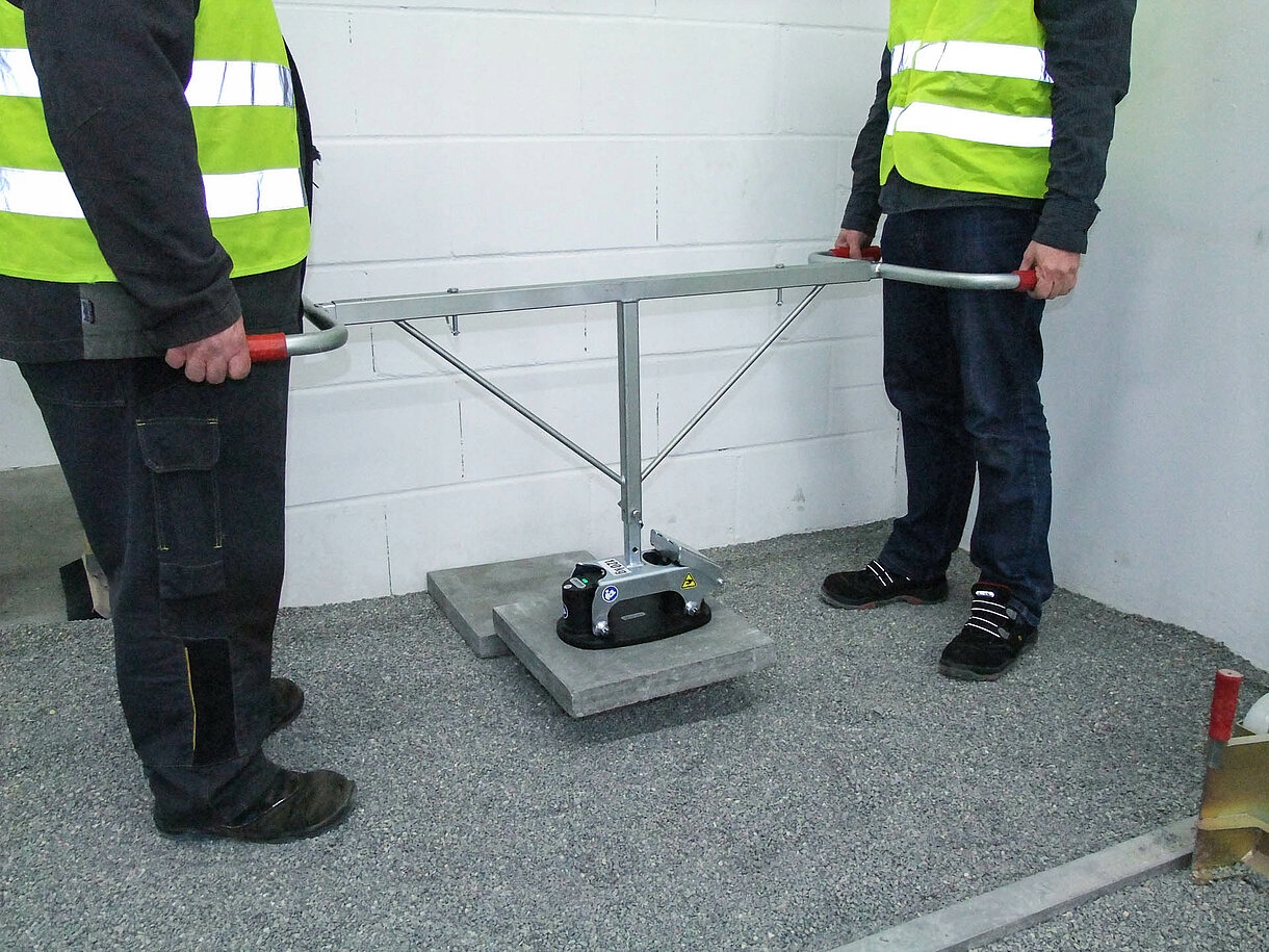 >> Предназначен для подрядчиков, занимающихся земляными и кровельными работами, для быстрого и эргономичного подъема, перемещения и укладки впитывающих бетонных плит, натуральных камней, плитки и других впитывающих строительных материалов. <<