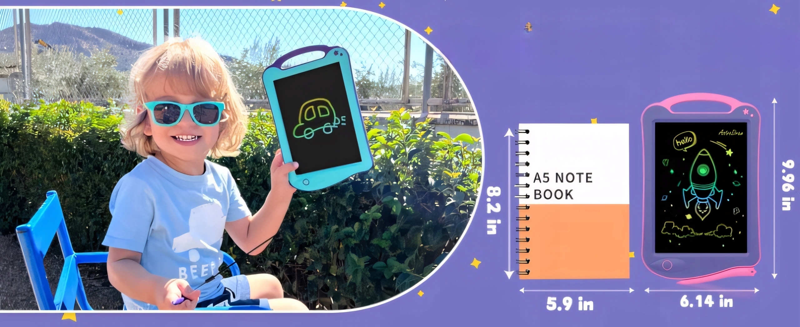 LCD -графический планшет - это идеальная образовательная игрушка, которая развивает творчество детей и ручные навыки. Благодаря разноцветным линиям , простой рисунок и быстрое удаление с одной кнопкой малышей может создавать без ограничений! Легкий, долговечный и безопасен для глаз , это великолепно, как компаньон на ходу.