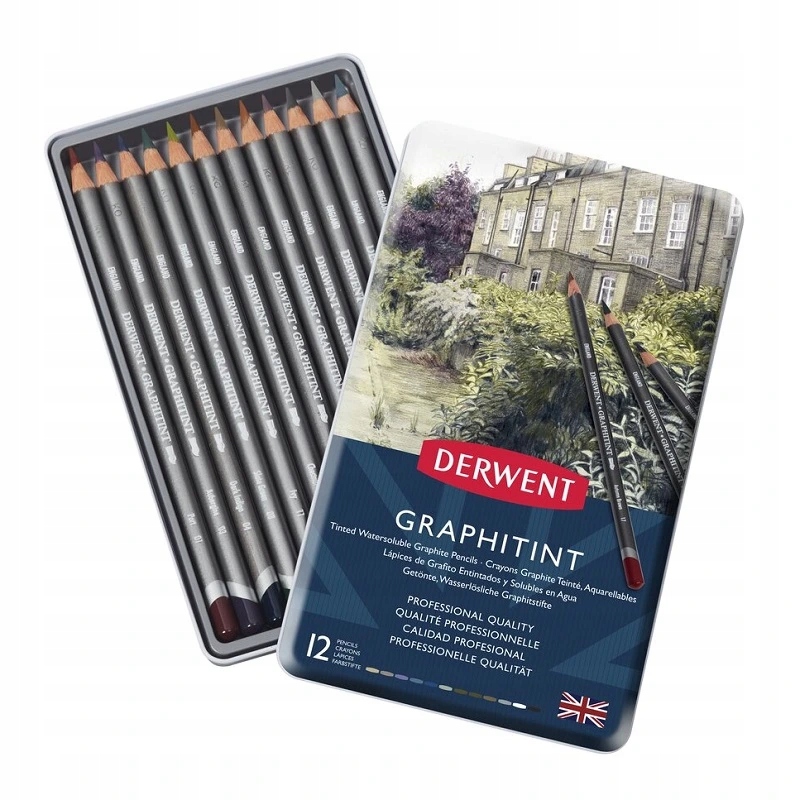 Графітові олівці DERWENT Graphitint, 12 шт. у металевій коробці