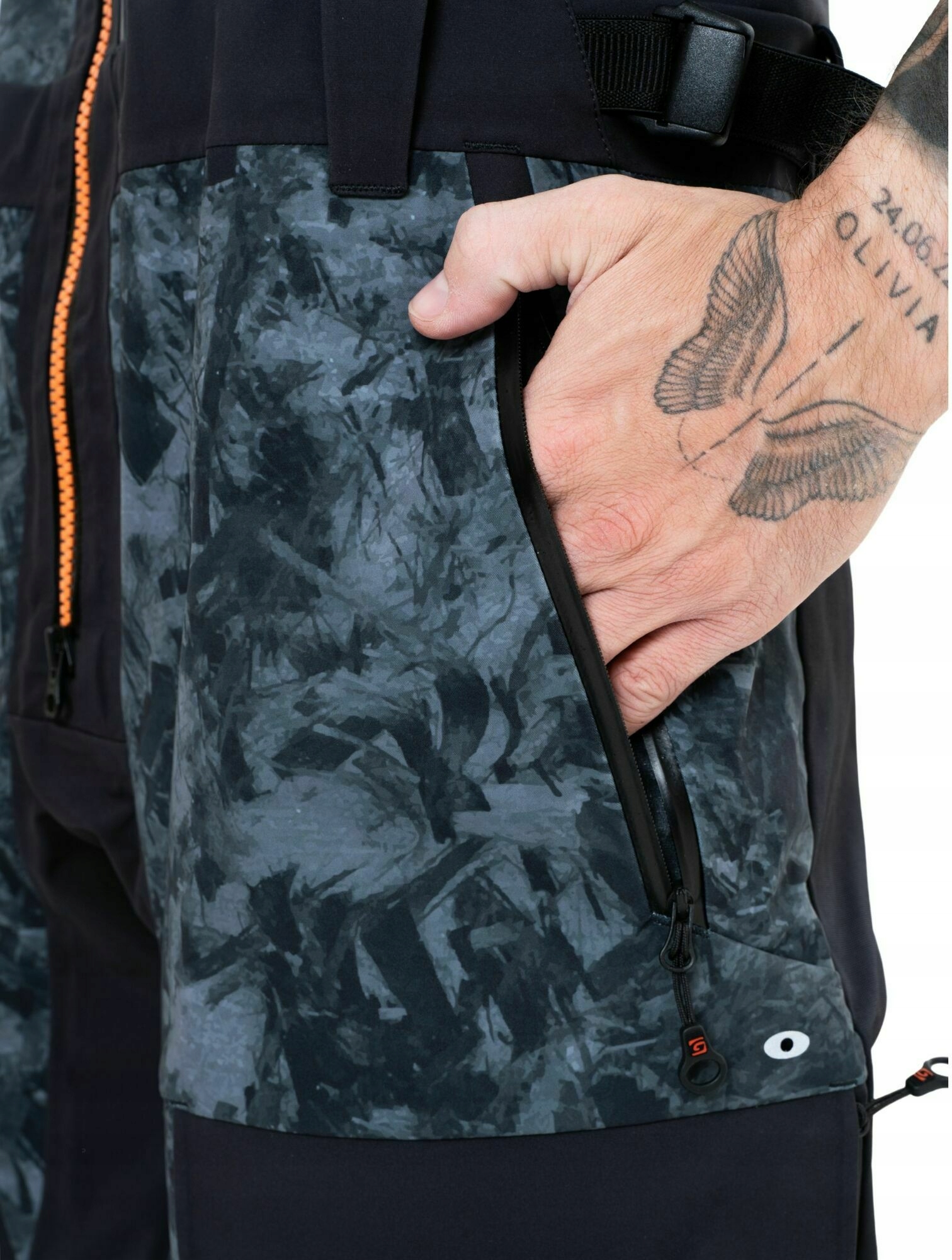 - 5 лиманных карманов, закрепленных на липучке и закрепленных водонепроницаемыми и водонепроницаемыми карманами YKK® Vislon® с дополнительным дренажом воды