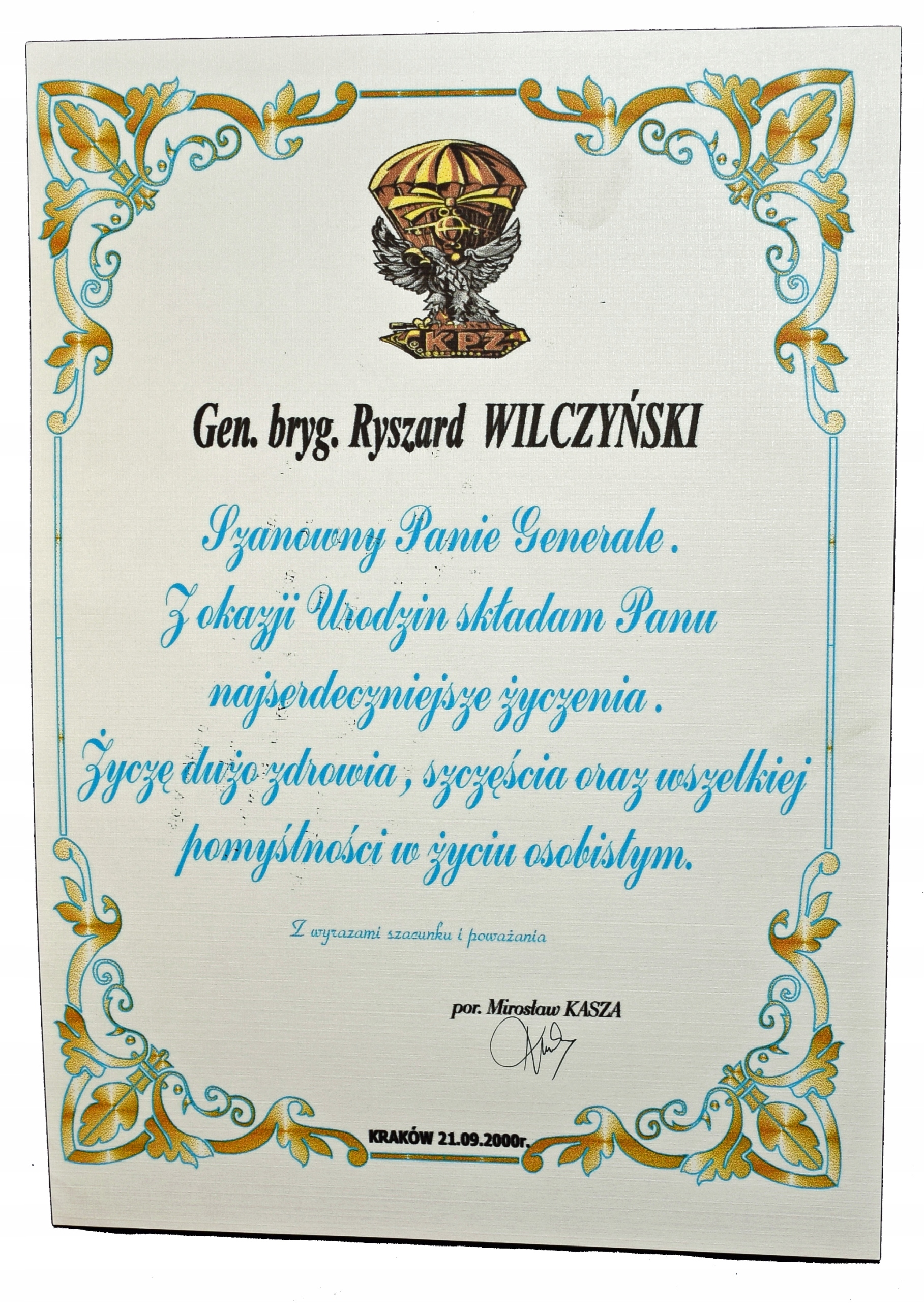 Грамоти генерала Ришарда Вільчинського - 4 шт., Військо Польське після 1990 р.