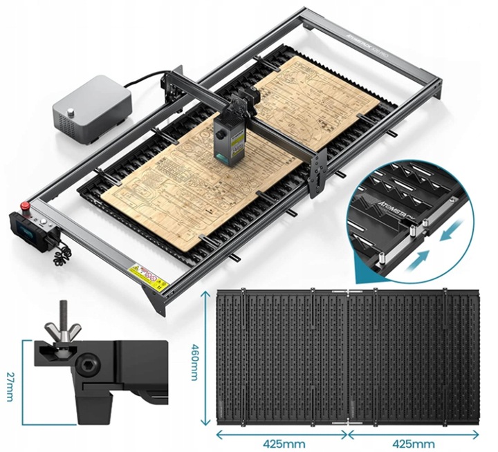 Один -цельный дизайн устраняет необходимость разрезать нижний шар; Просто используйте F3, чтобы защитить столешницу от ожогов. Большая защитная поверхность позволяет покрыть одной поверхностной панелью до 460 x 425 мм. Механизм монтажа защищает материал во время гравировки или резки, обеспечивая точную гравировку.