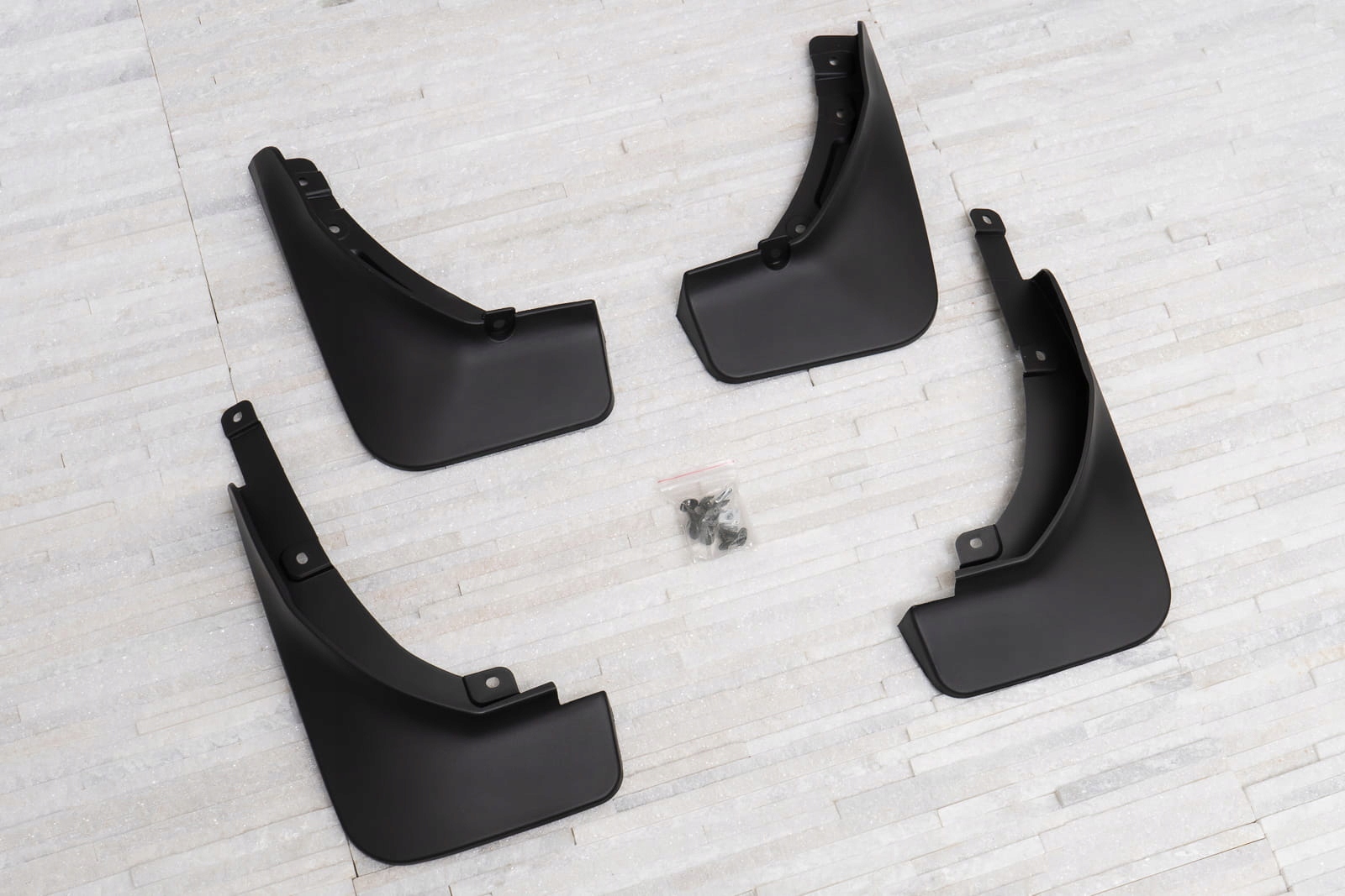 В комплект входит комплект из четырех брызговиков и элементов крепления. Изделие устанавливается на заводские места, без дополнительных доработок. Мы рекомендуем установку в профессиональной мастерской.