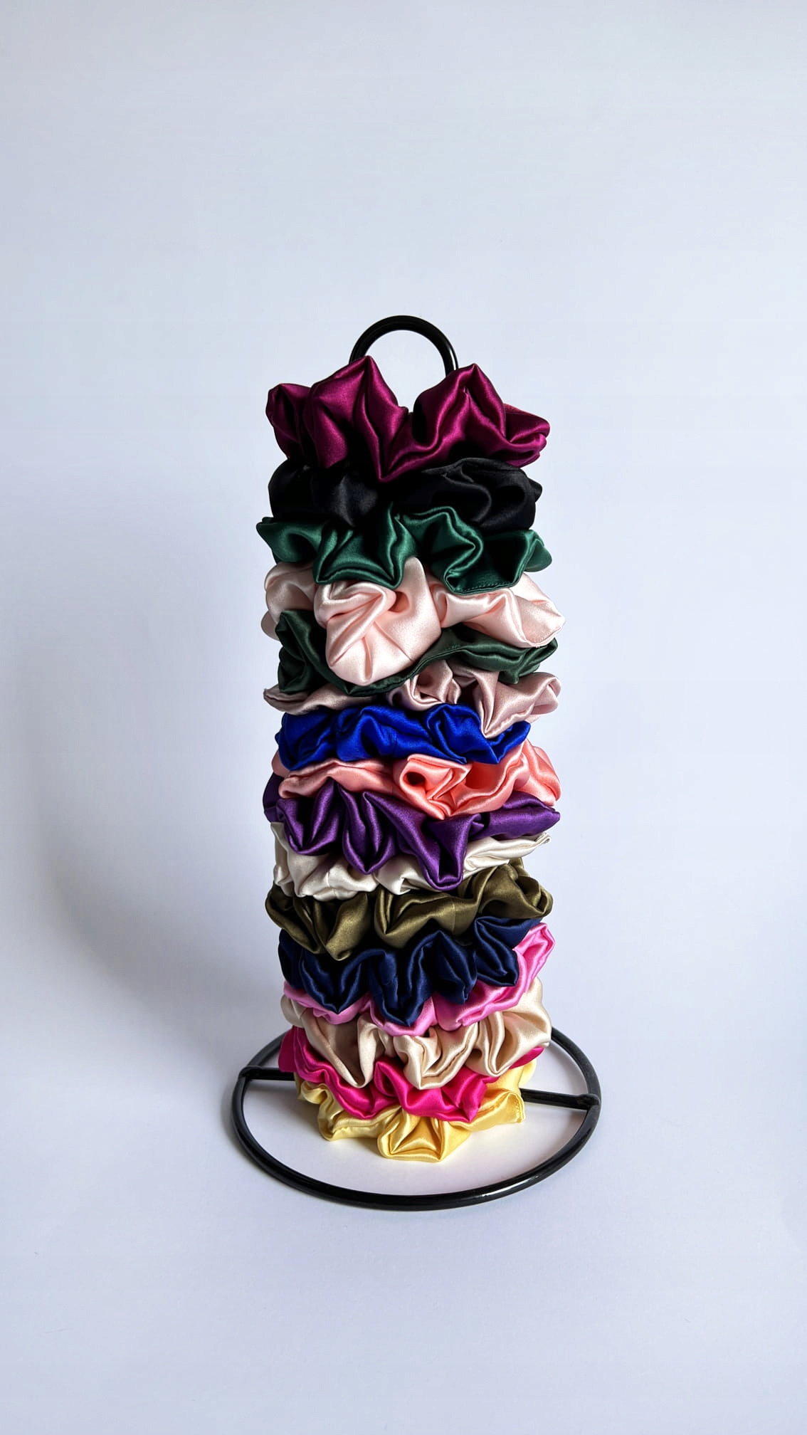Диаметр резинки SCRUNCHIE STANDARD SILK примерно 10 см. Подходит для всех типов волос. В зависимости от густоты волос вы сможете завязать их до 4 раз (обычно дважды для волос средней толщины).